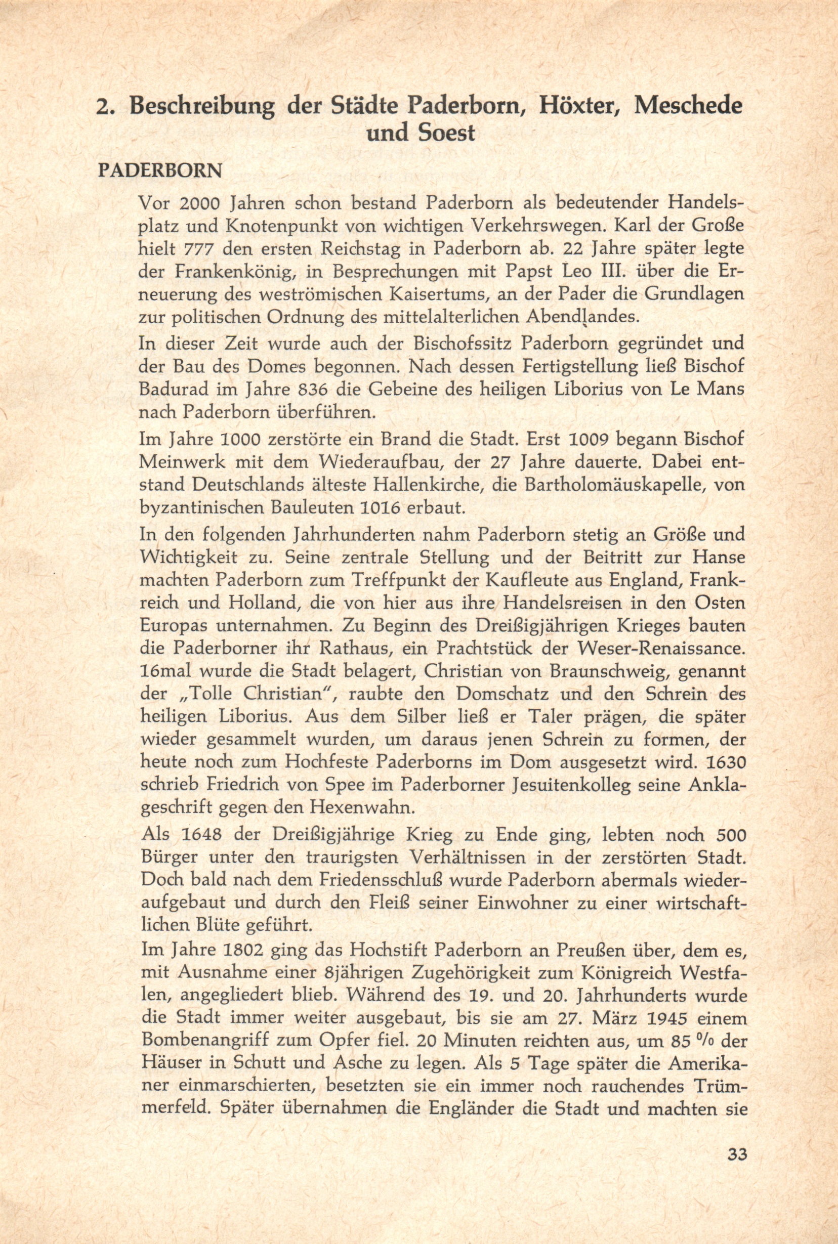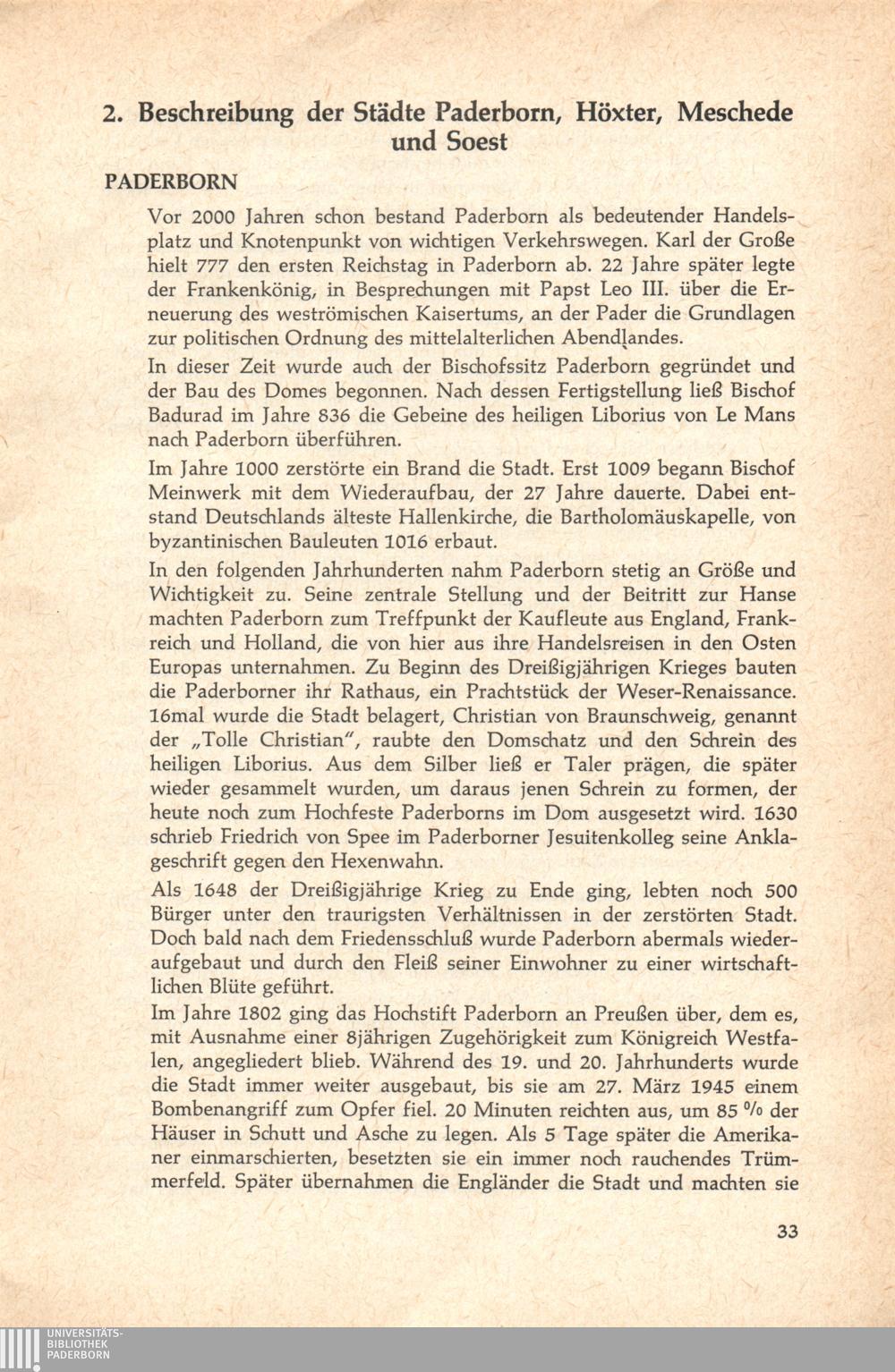 2. Beschreibung der Städte Paderborn, Höxter, Meschede und Soest