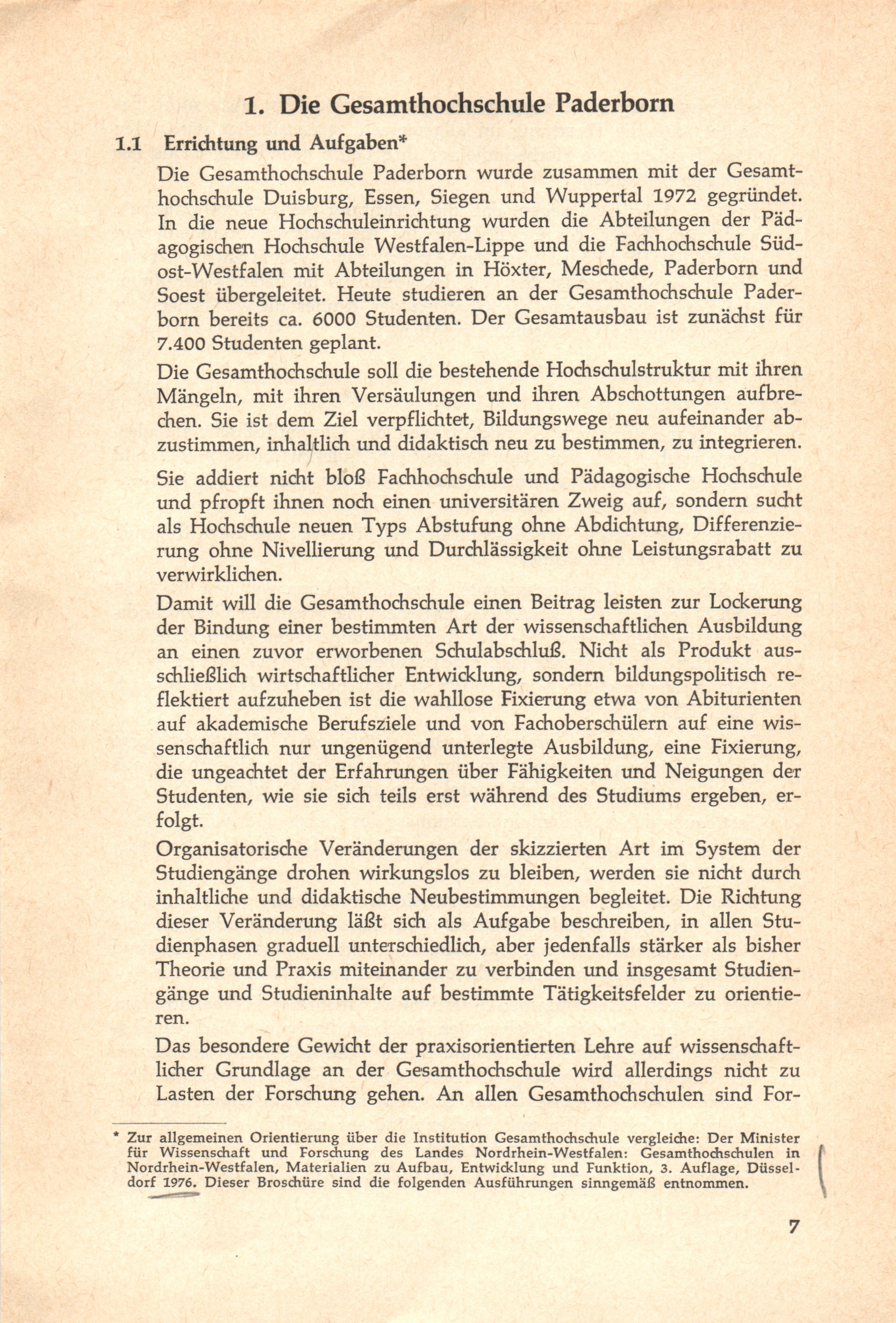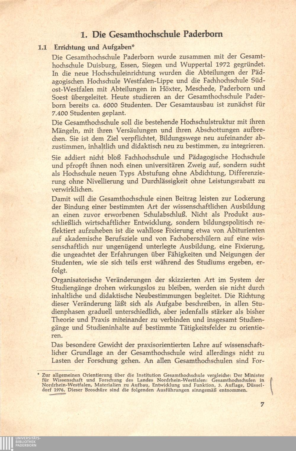 1. Die Gesamthochschule Paderborn