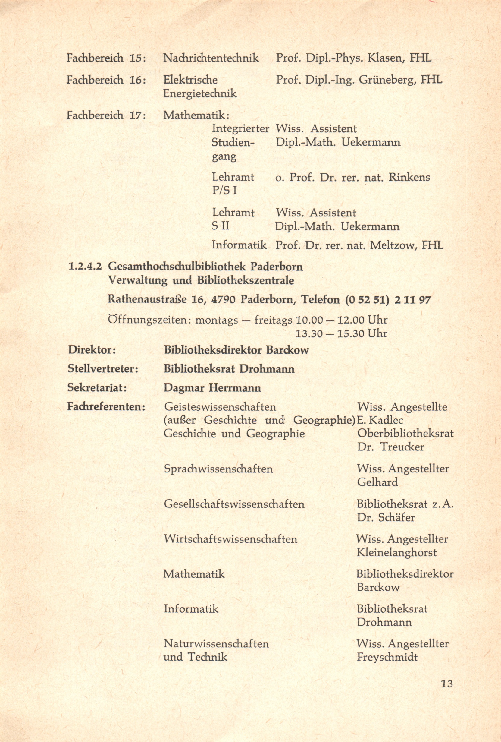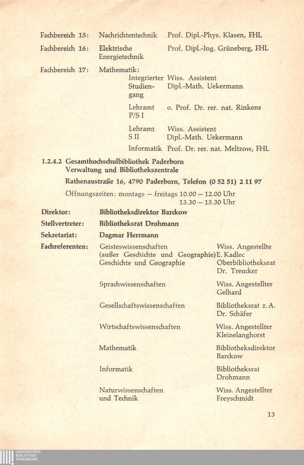 1. Die Gesamthochschule Paderborn