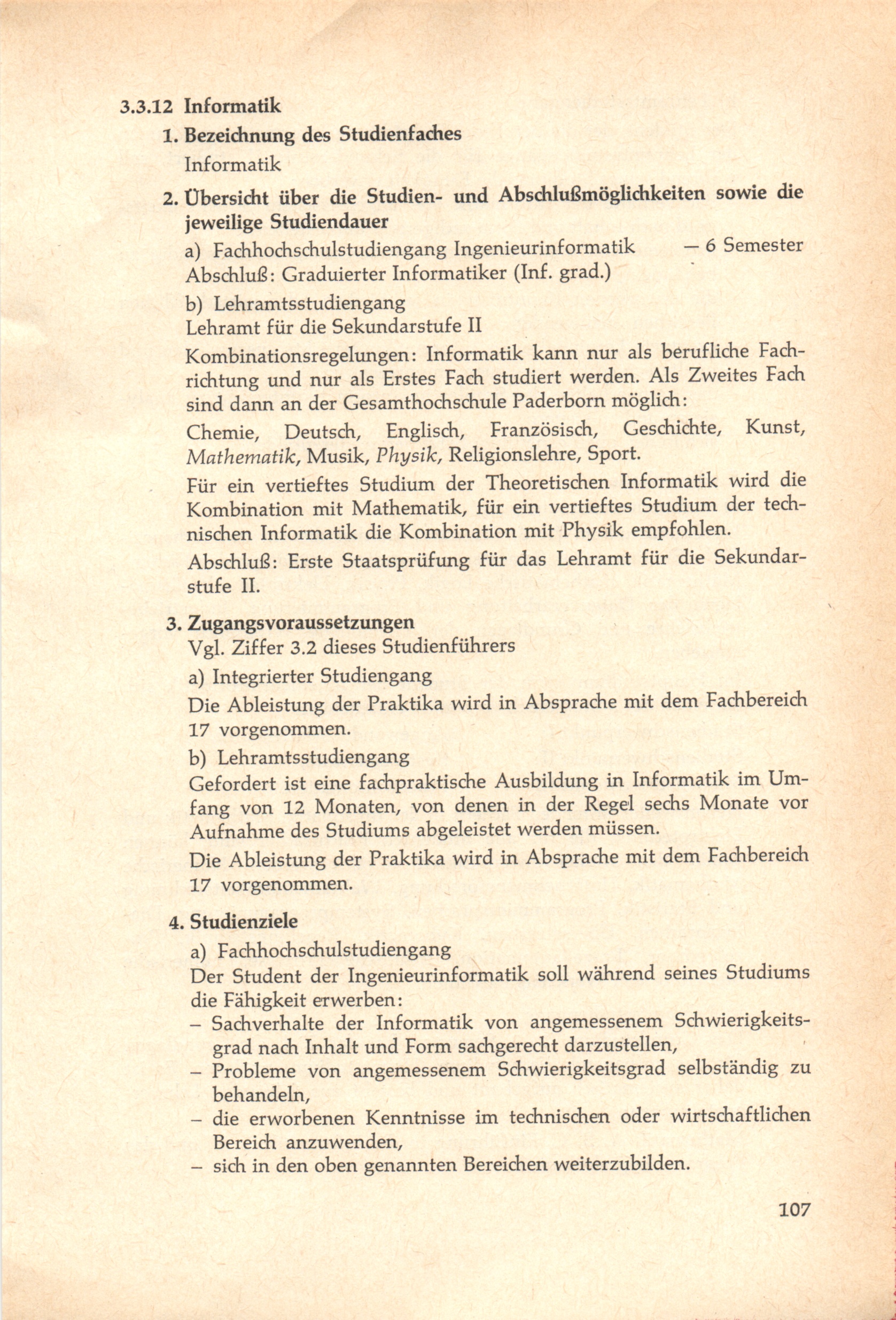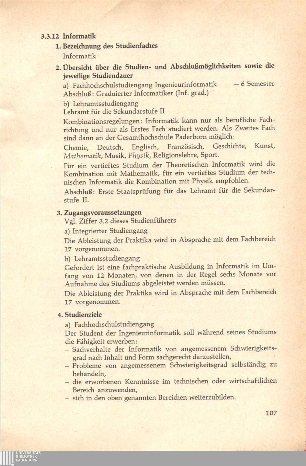 3. Das Studienangebot an der Gesamthochschule Paderborn