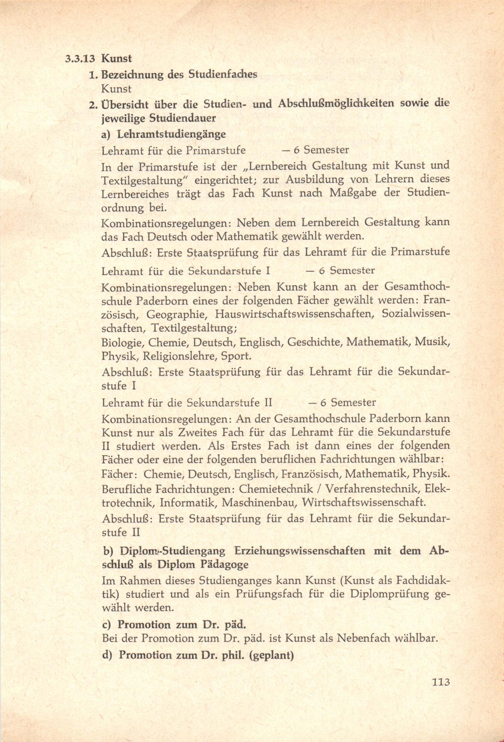 3. Das Studienangebot an der Gesamthochschule Paderborn