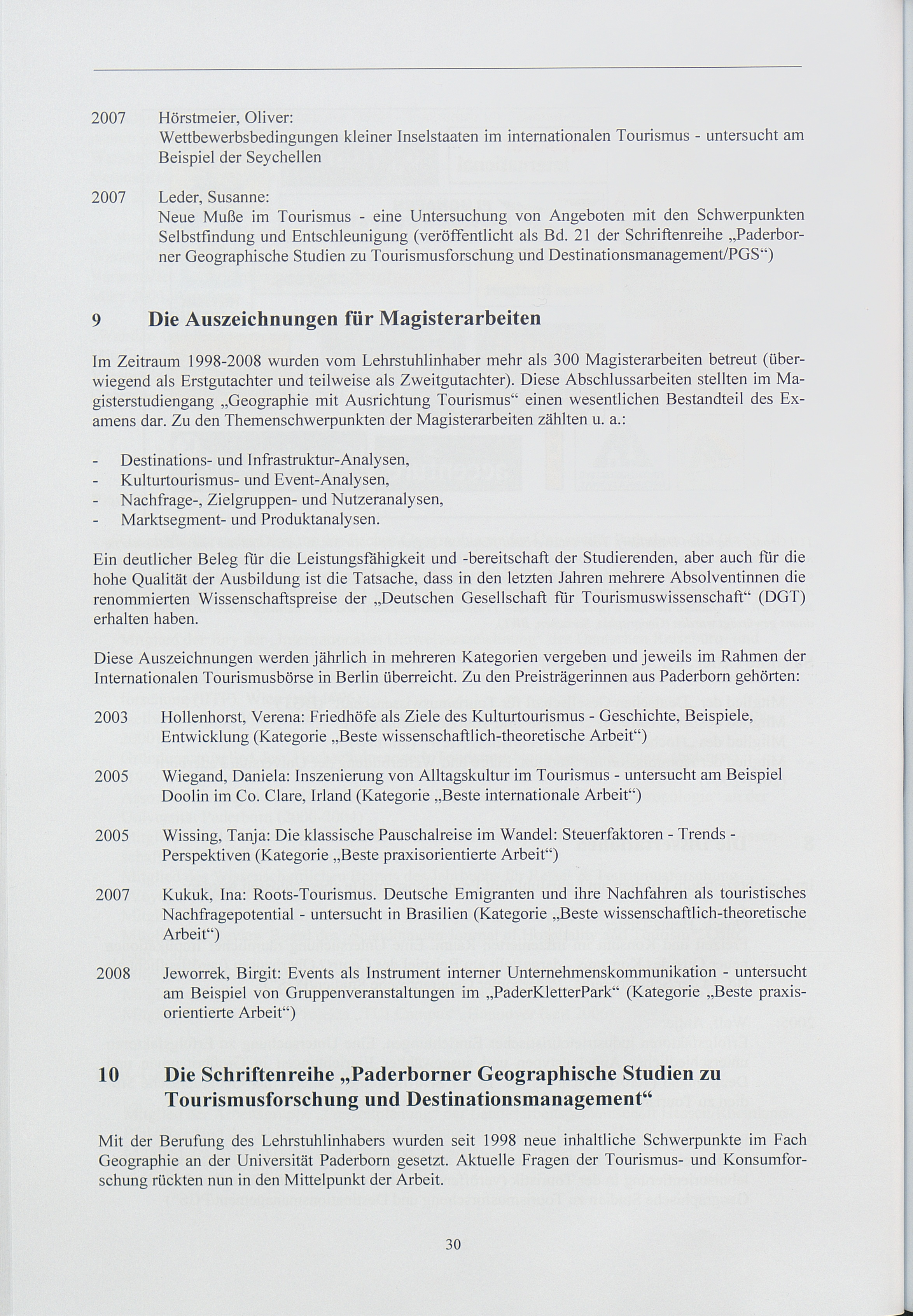 10 Die Schriftenreihe "Paderborner Geographische Studien zu Tourismusforschung und Destinationsmanagement"