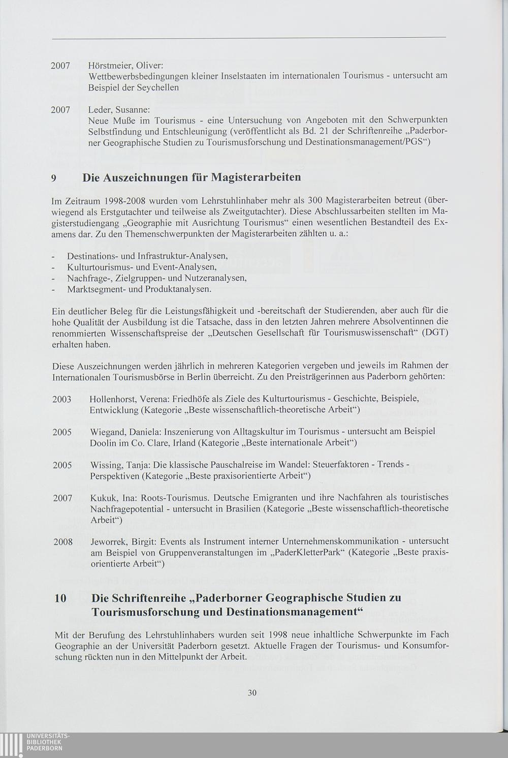 10 Die Schriftenreihe "Paderborner Geographische Studien zu Tourismusforschung und[...]