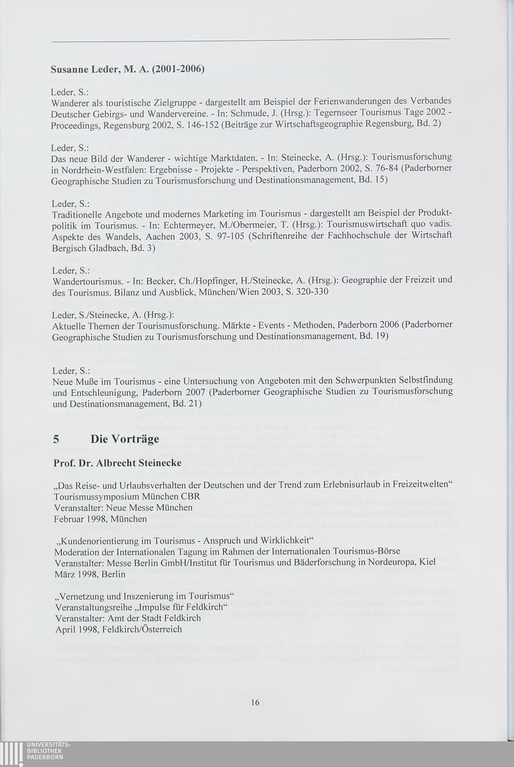 9 Die Schriftenreihe "Paderborner Geographische Studien zu Tourismusforschung und Destinationsmanagment"