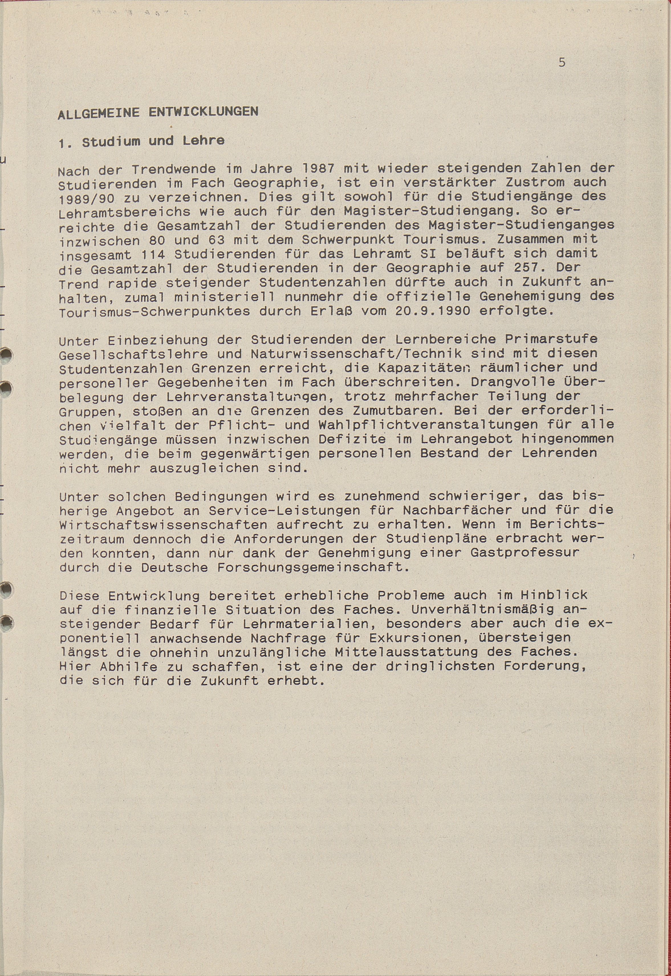 Jahresbericht ... des Faches Geographie im Fachbereich 1