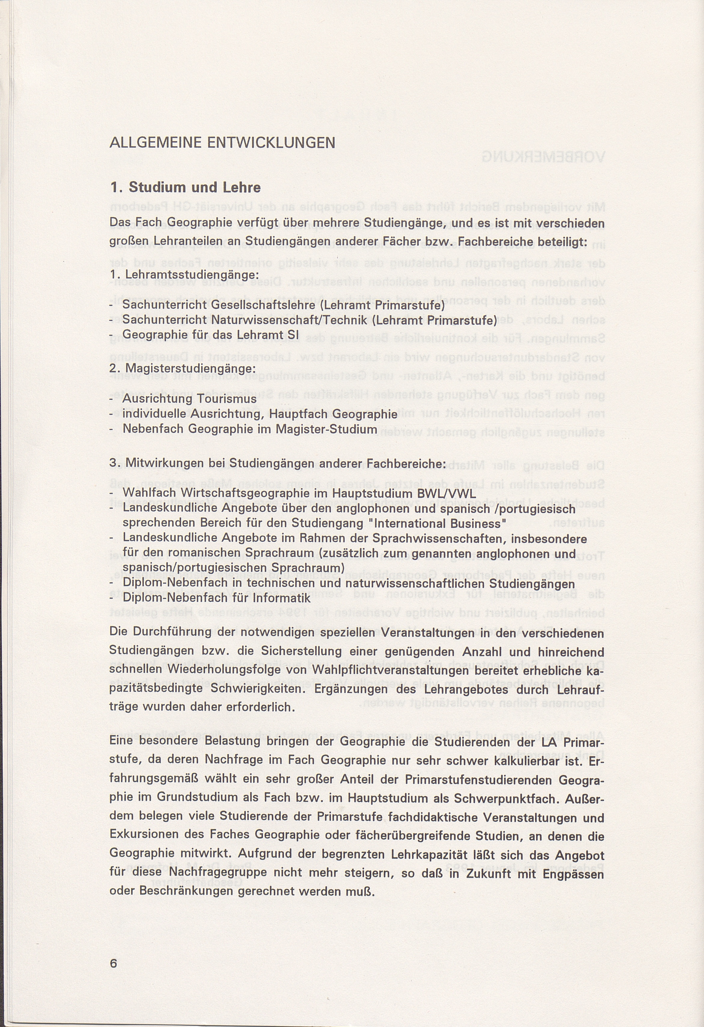 Jahresbericht ... des Faches Geographie im Fachbereich 1