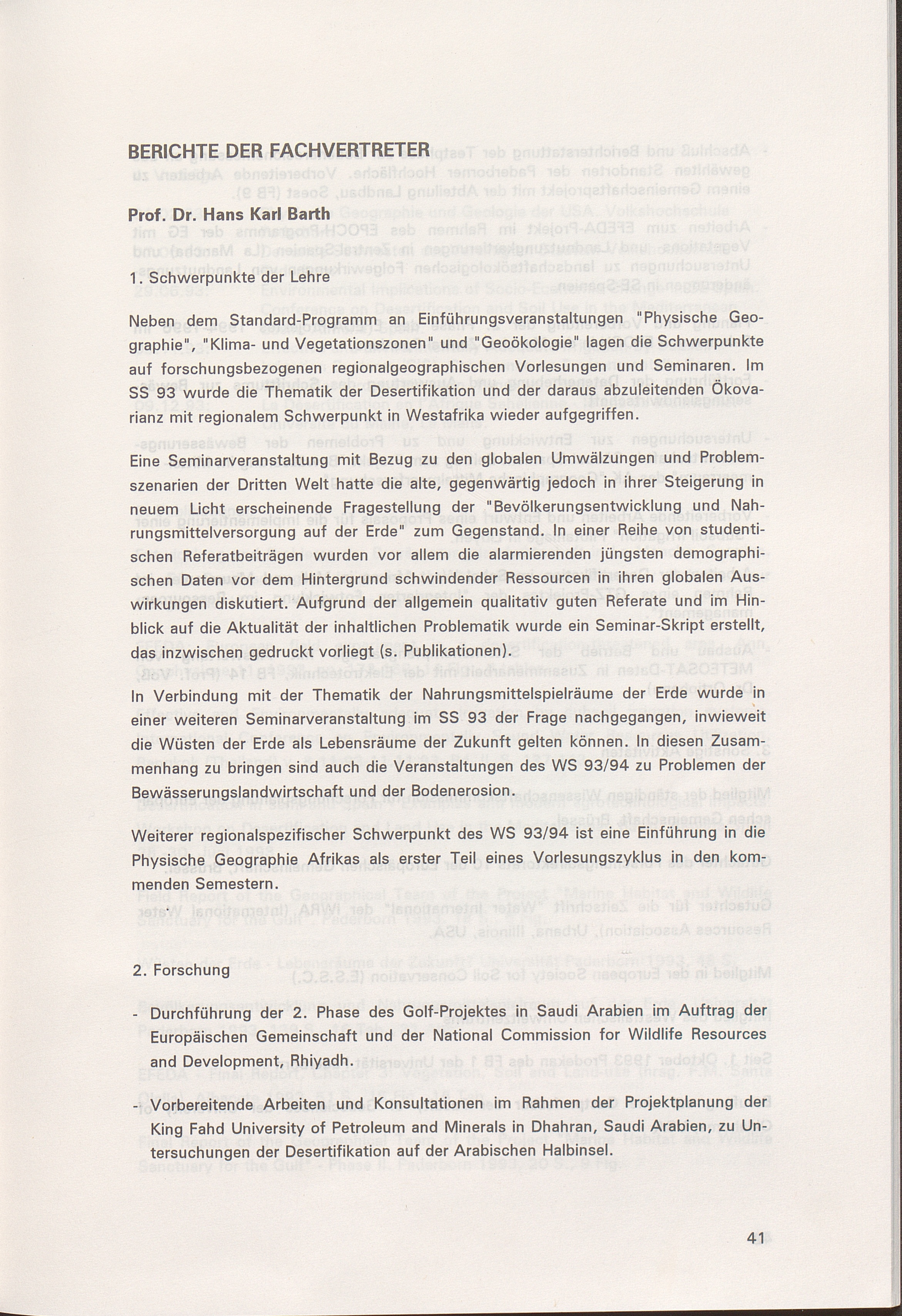 Jahresbericht ... des Faches Geographie im Fachbereich 1