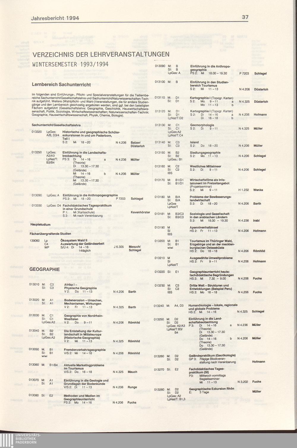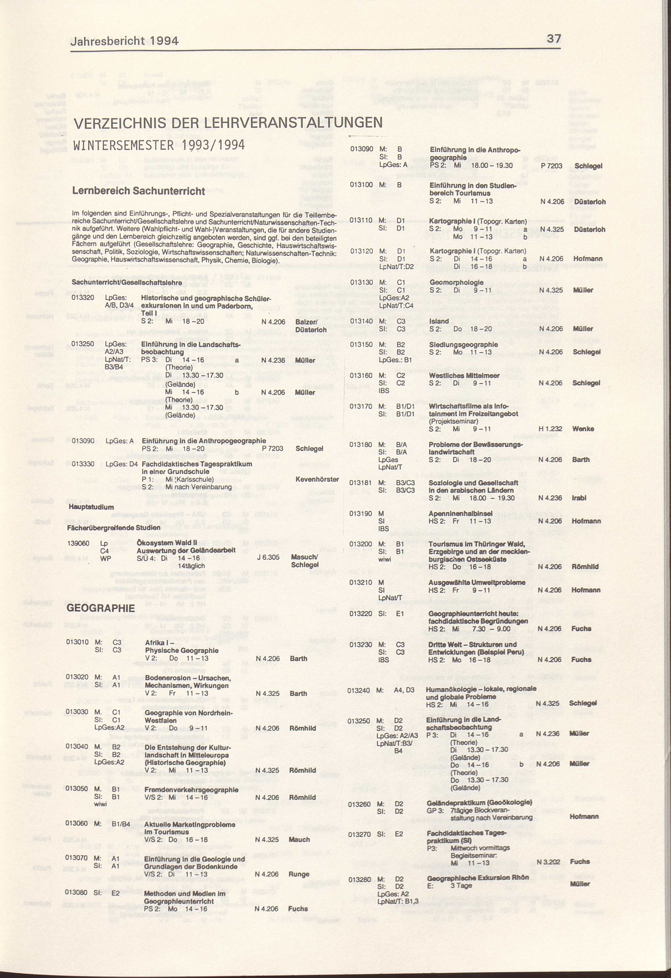 Verzeichnis der Lehrveranstaltungen