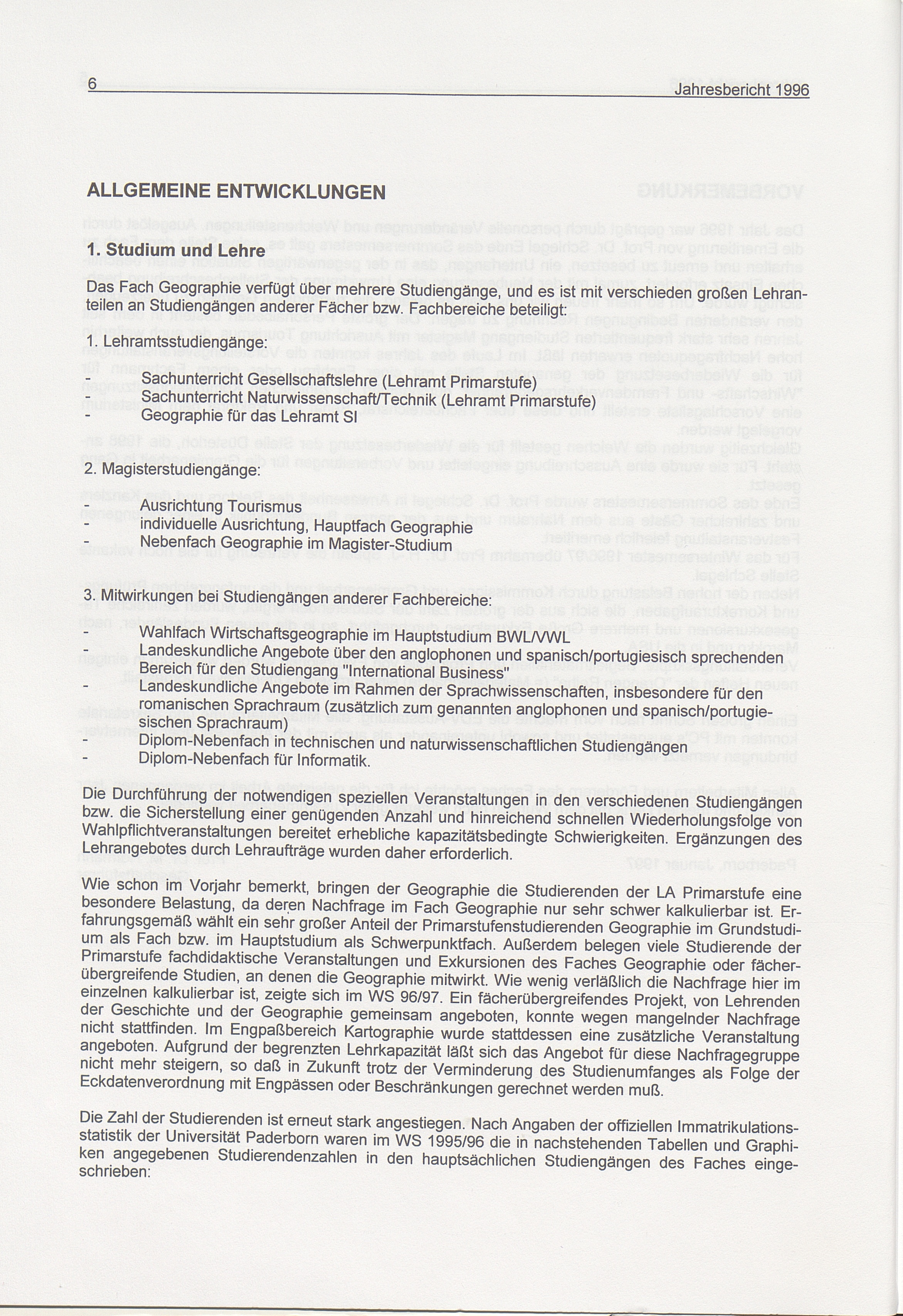 Jahresbericht ... des Faches Geographie im Fachbereich 1