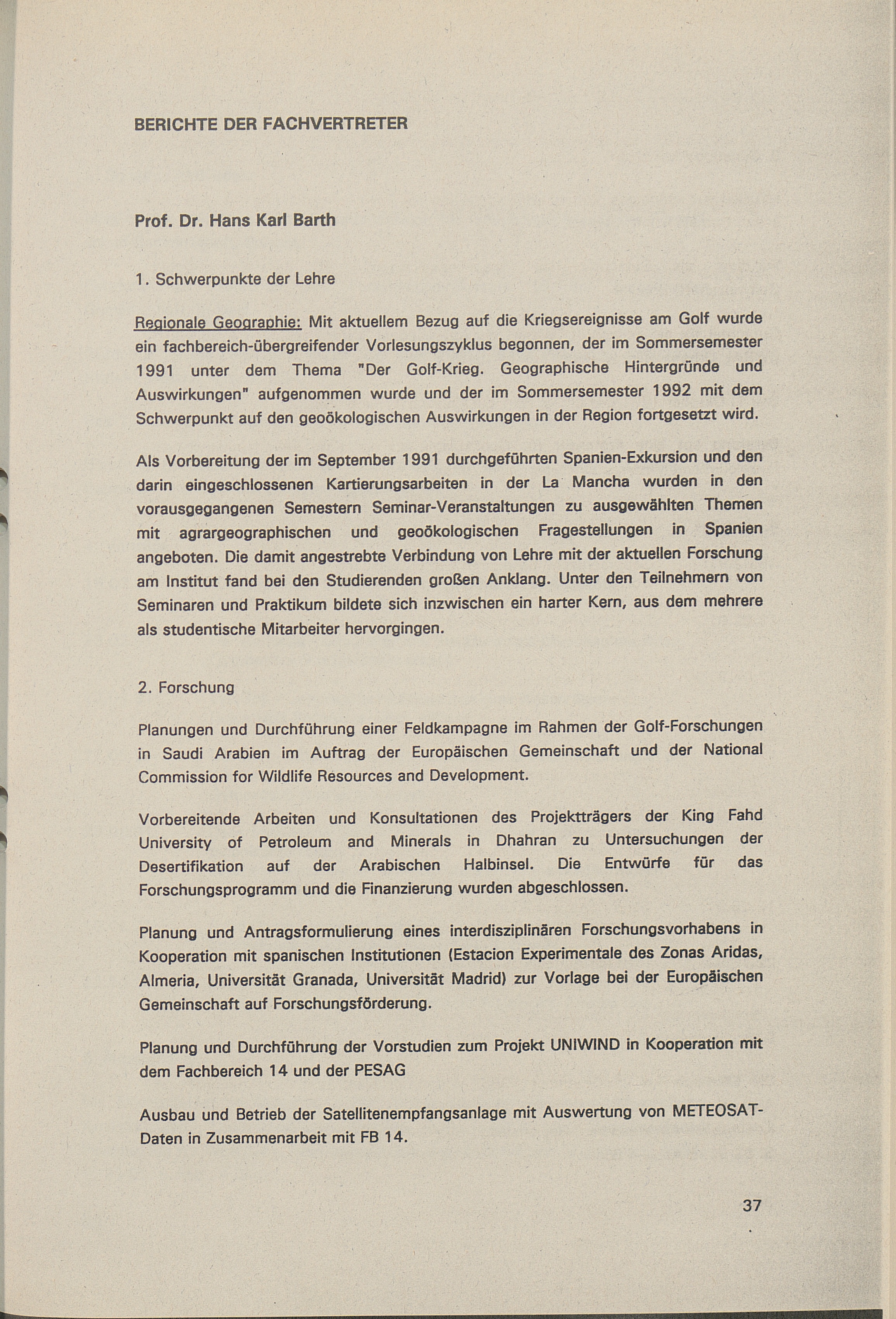 Jahresbericht ... des Faches Geographie im Fachbereich 1