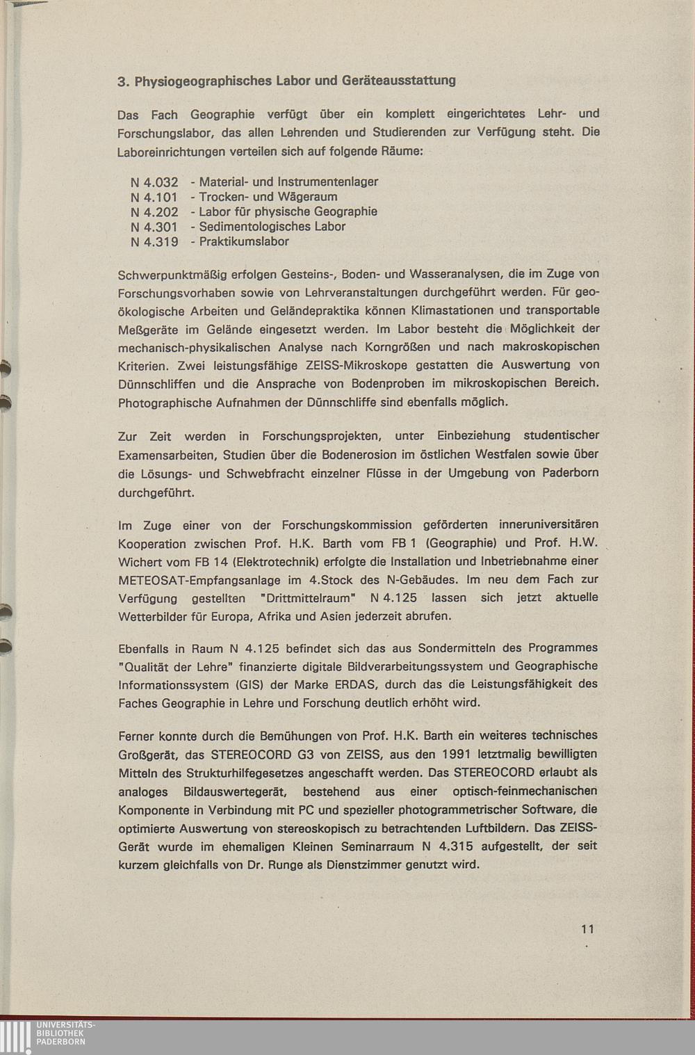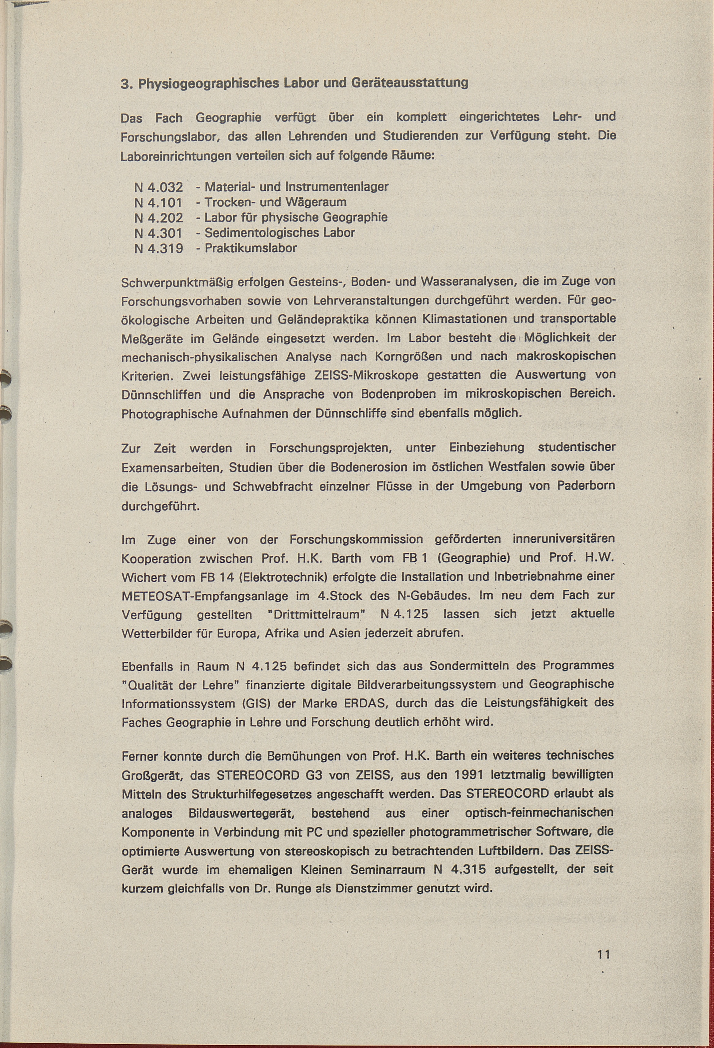 3. Physiogeographisches Labor und Geräteausstattung