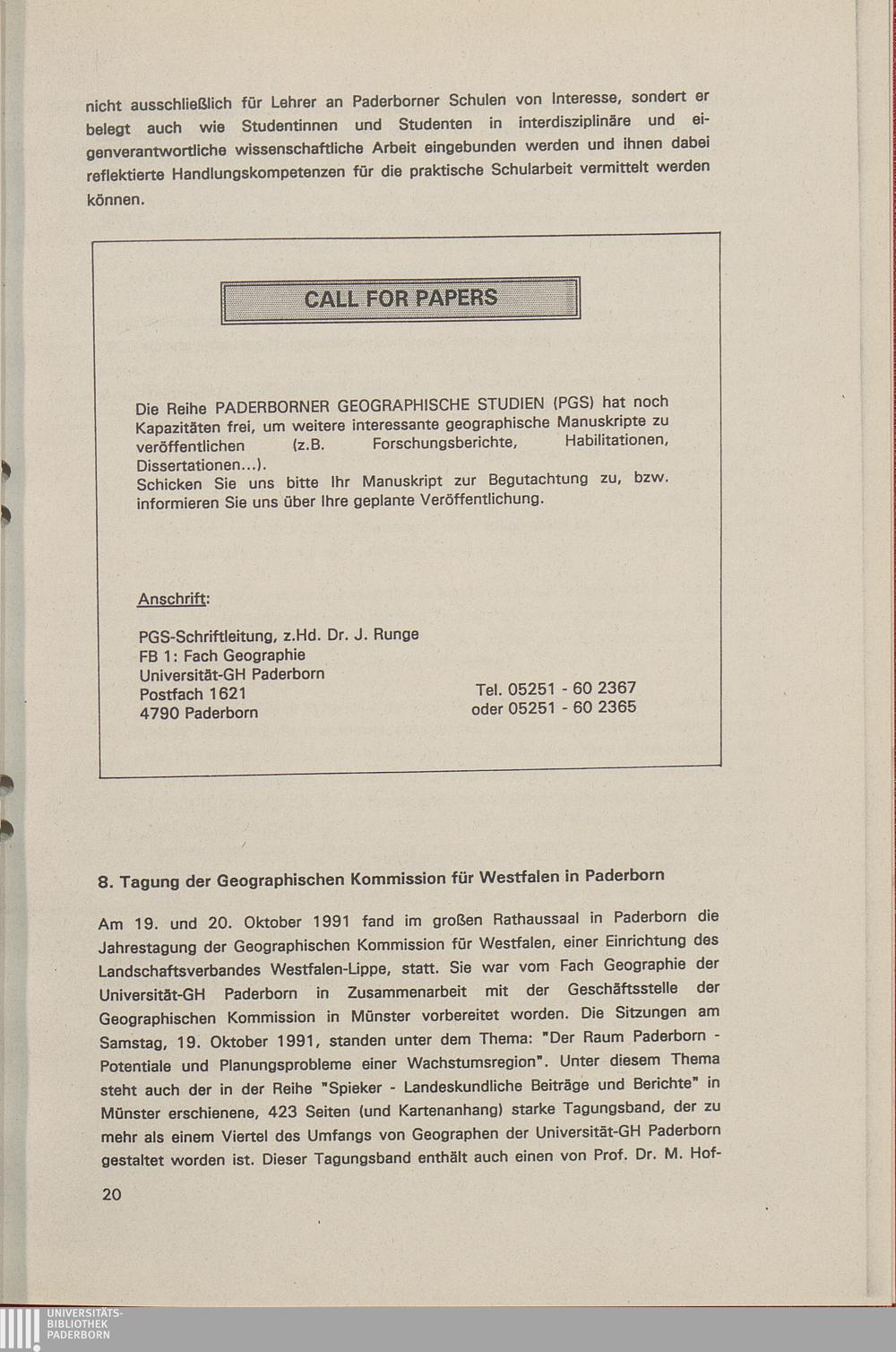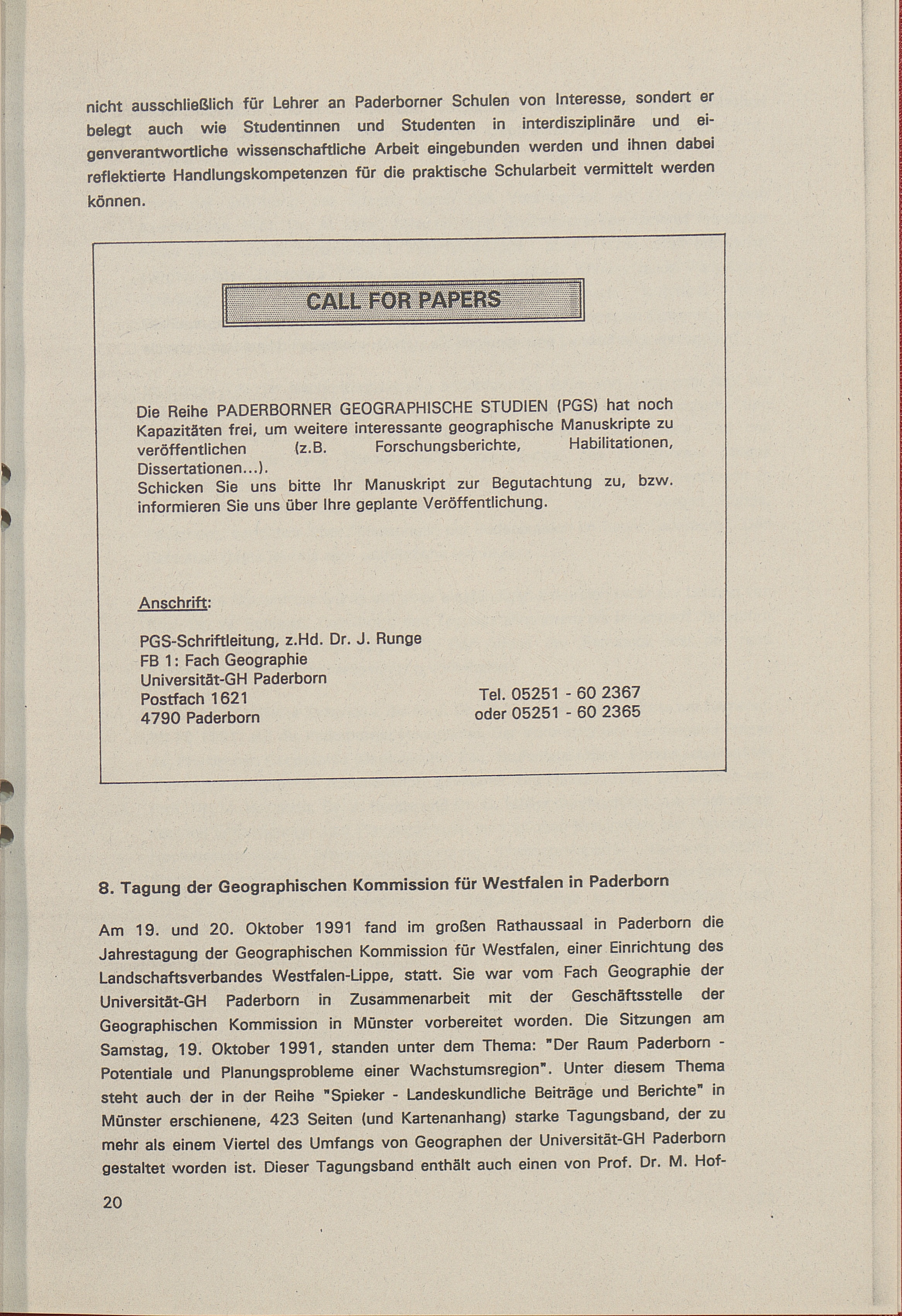Jahresbericht ... des Faches Geographie im Fachbereich 1