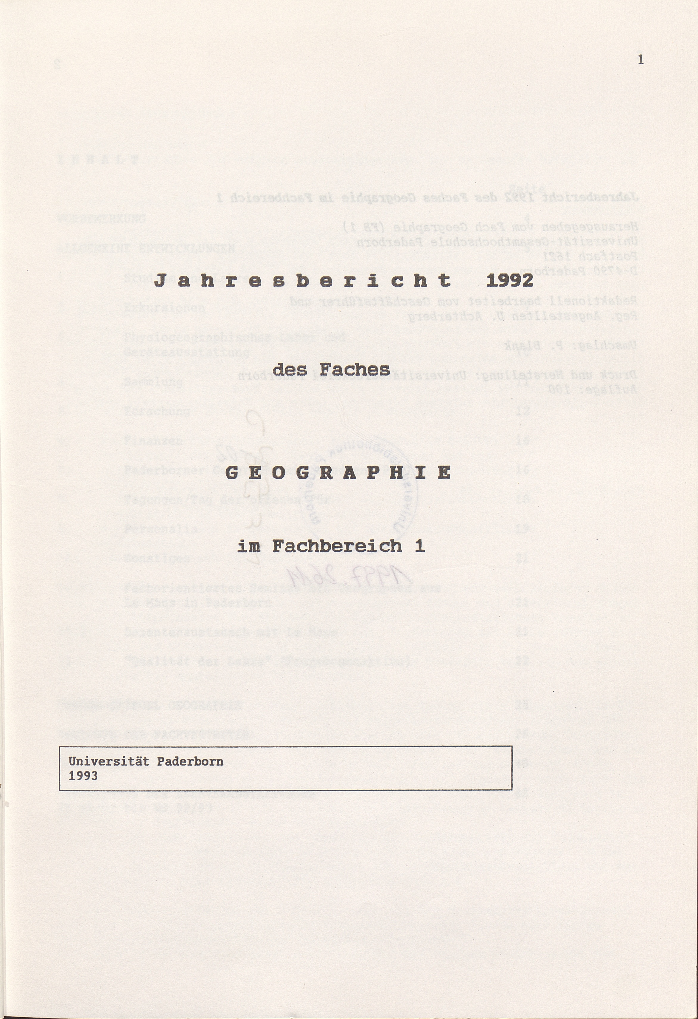 Jahresbericht ... des Faches Geographie im Fachbereich 1
