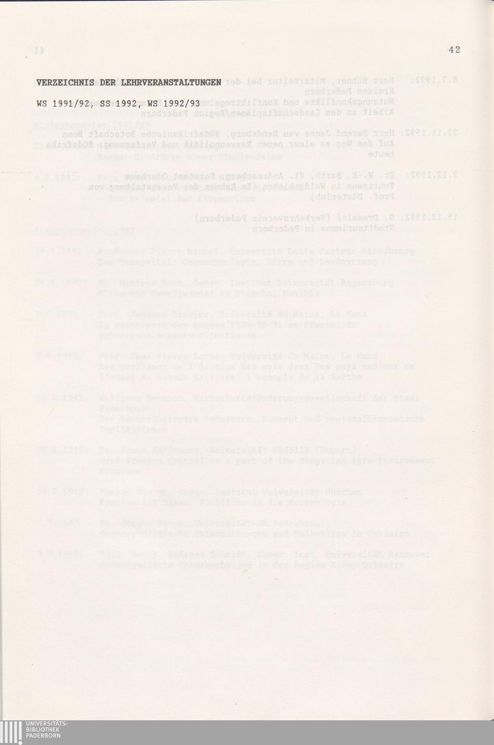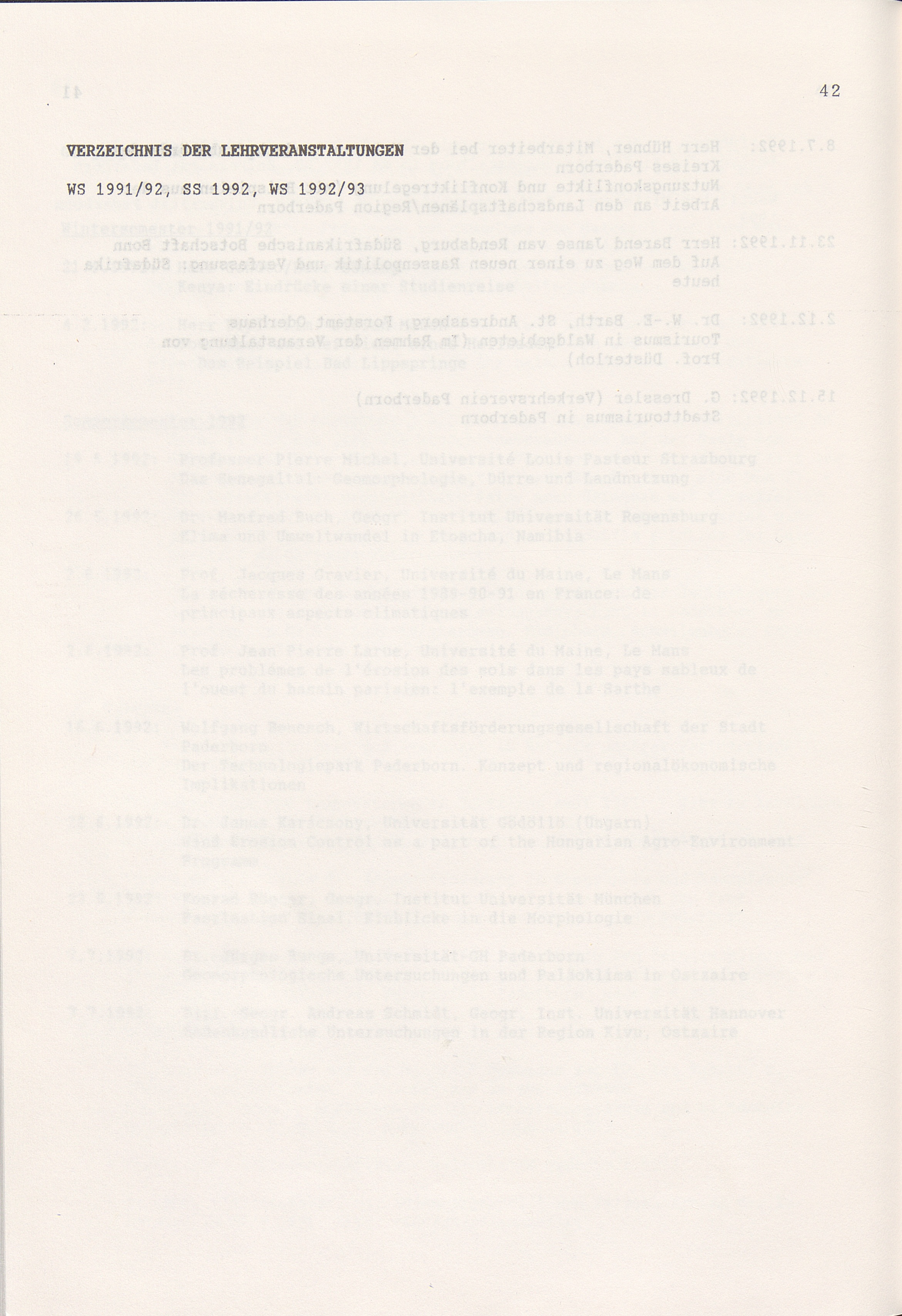 Verzeichnis der Lehrveranstaltungen WS 91/92 bis WS 92/93
