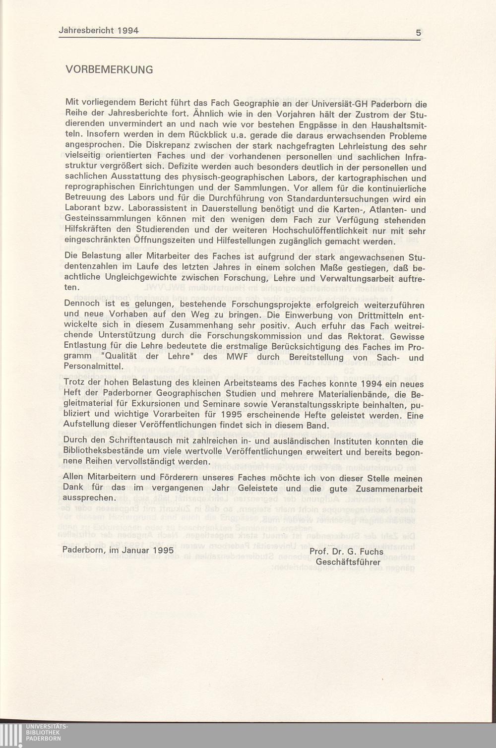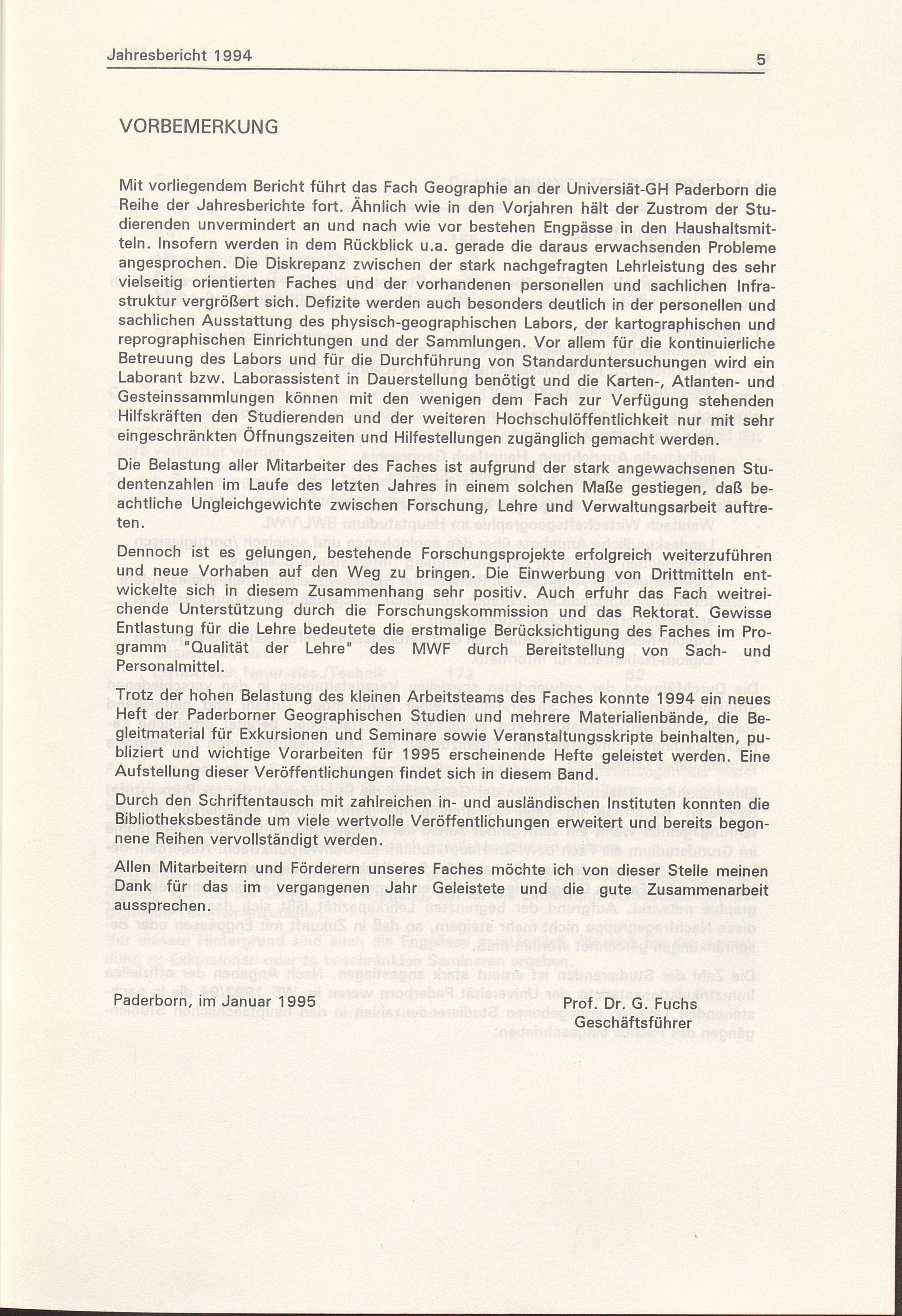 Jahresbericht ... des Faches Geographie im Fachbereich 1