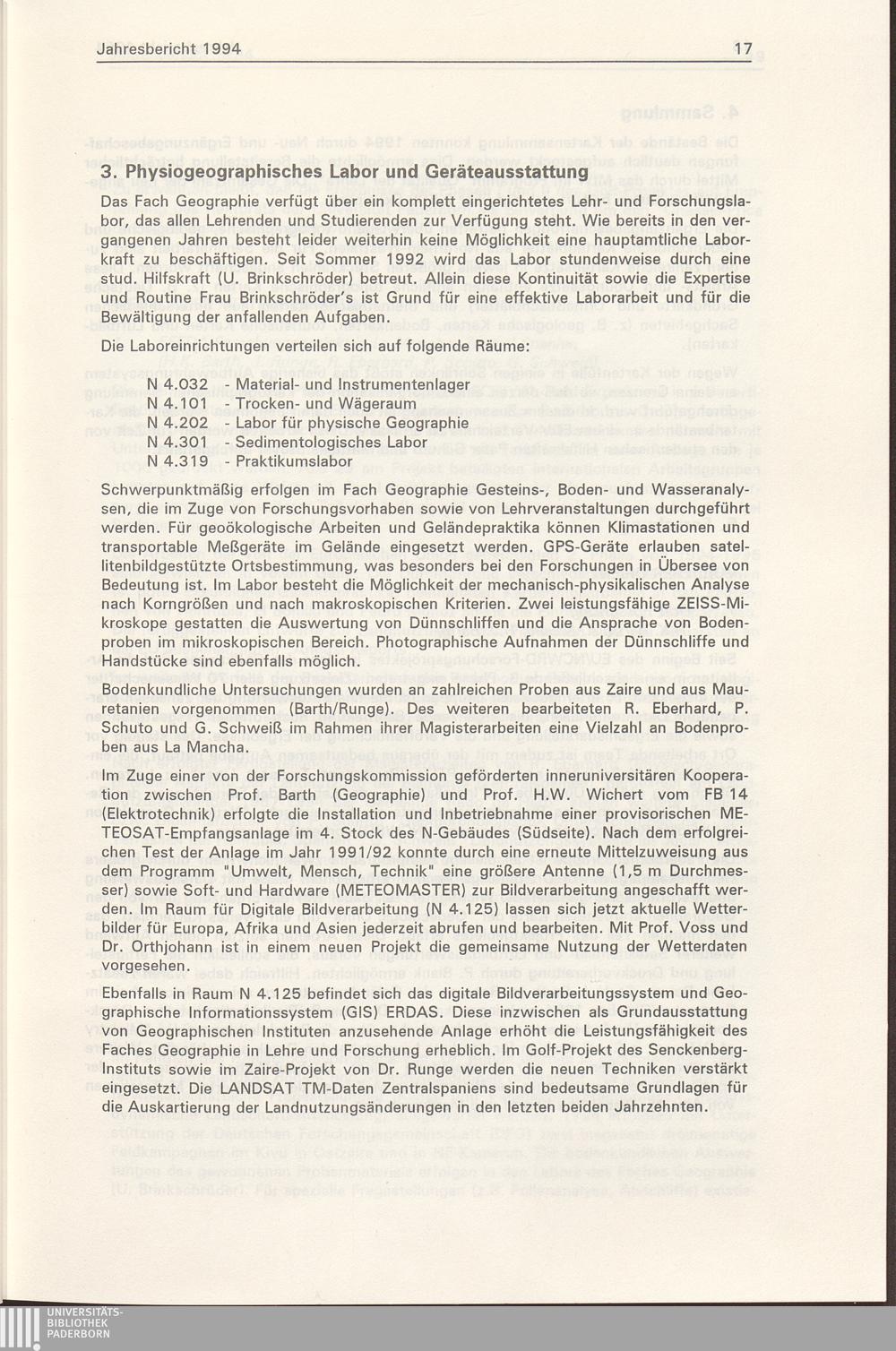 3. Physiogeographisches Labor und Geräteausstattung