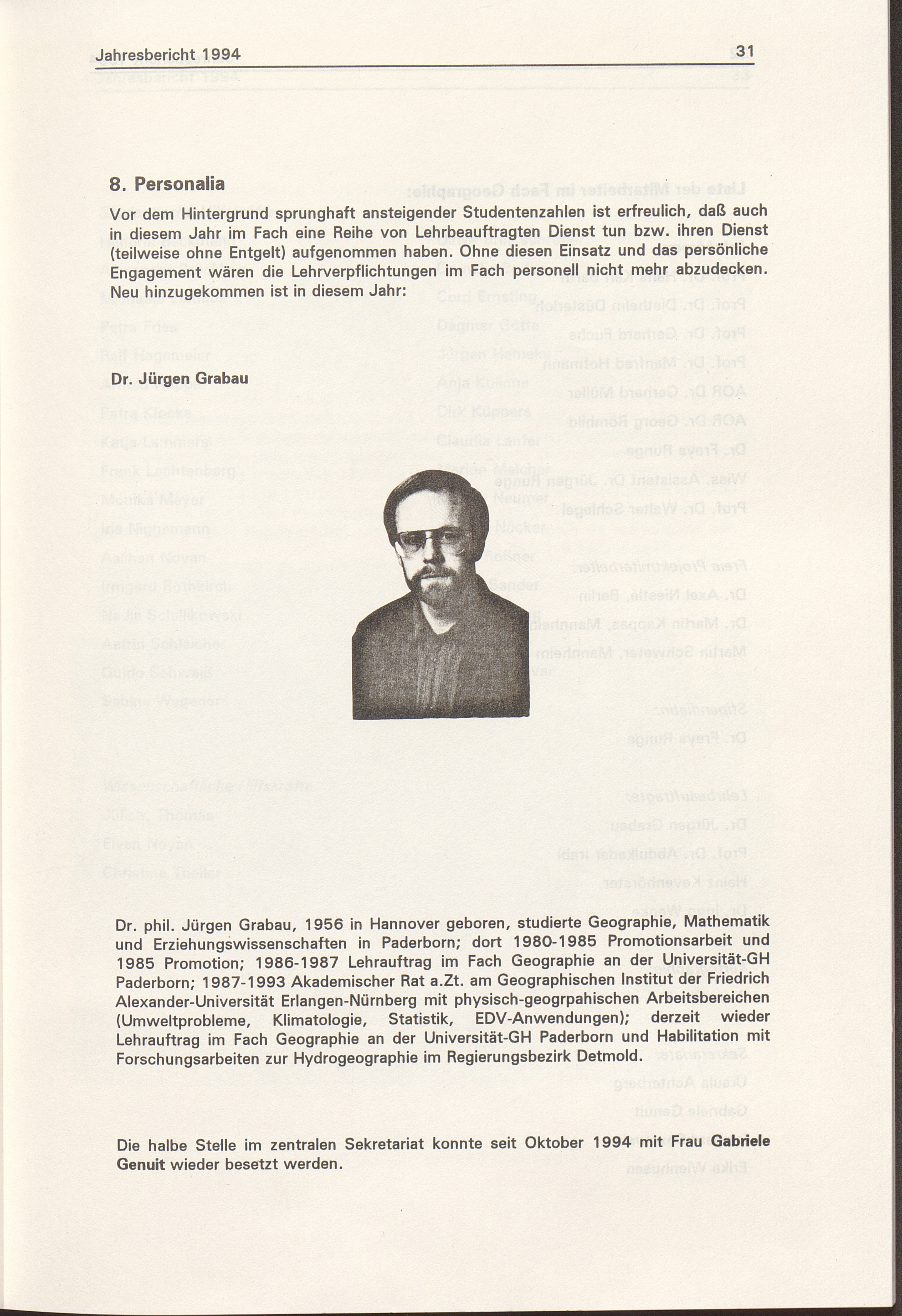 Jahresbericht ... des Faches Geographie im Fachbereich 1