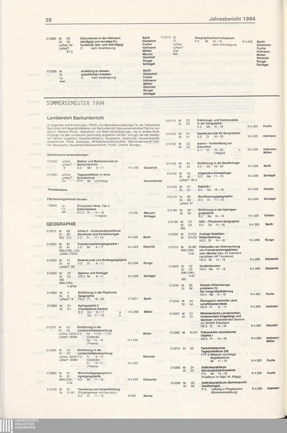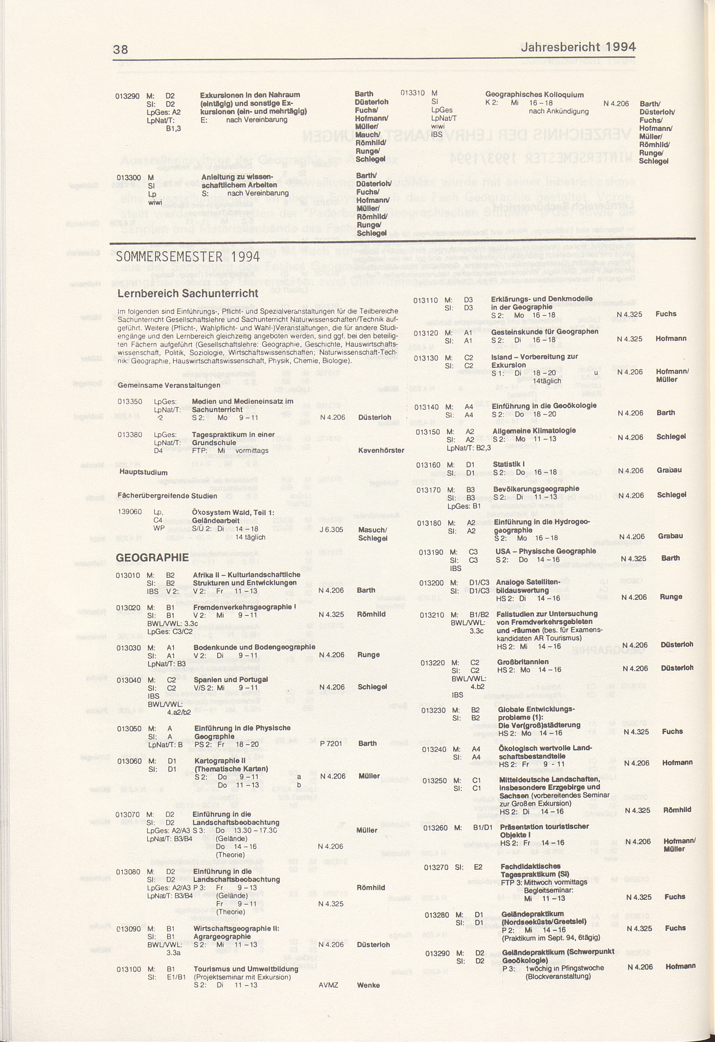 Jahresbericht ... des Faches Geographie im Fachbereich 1