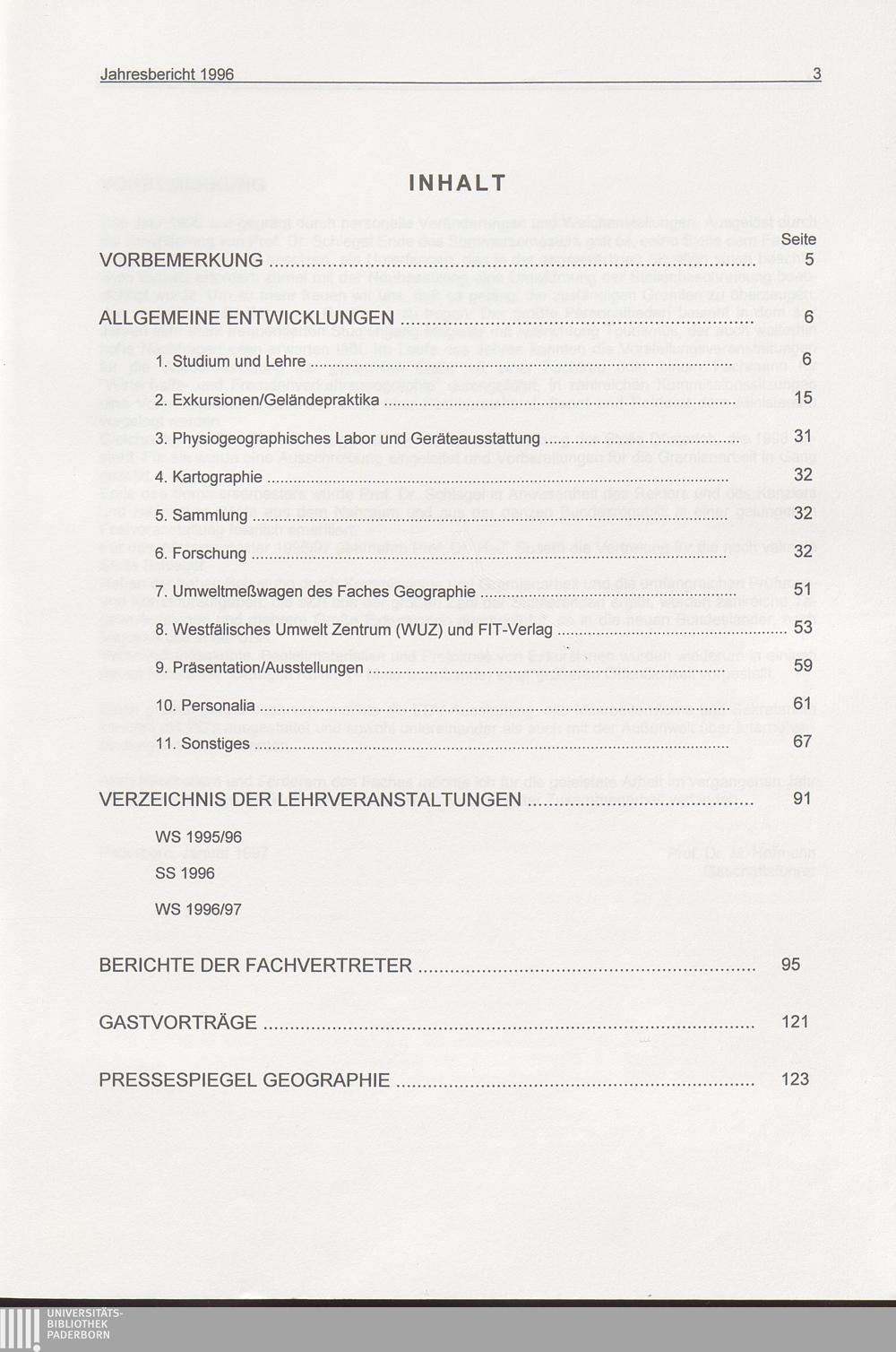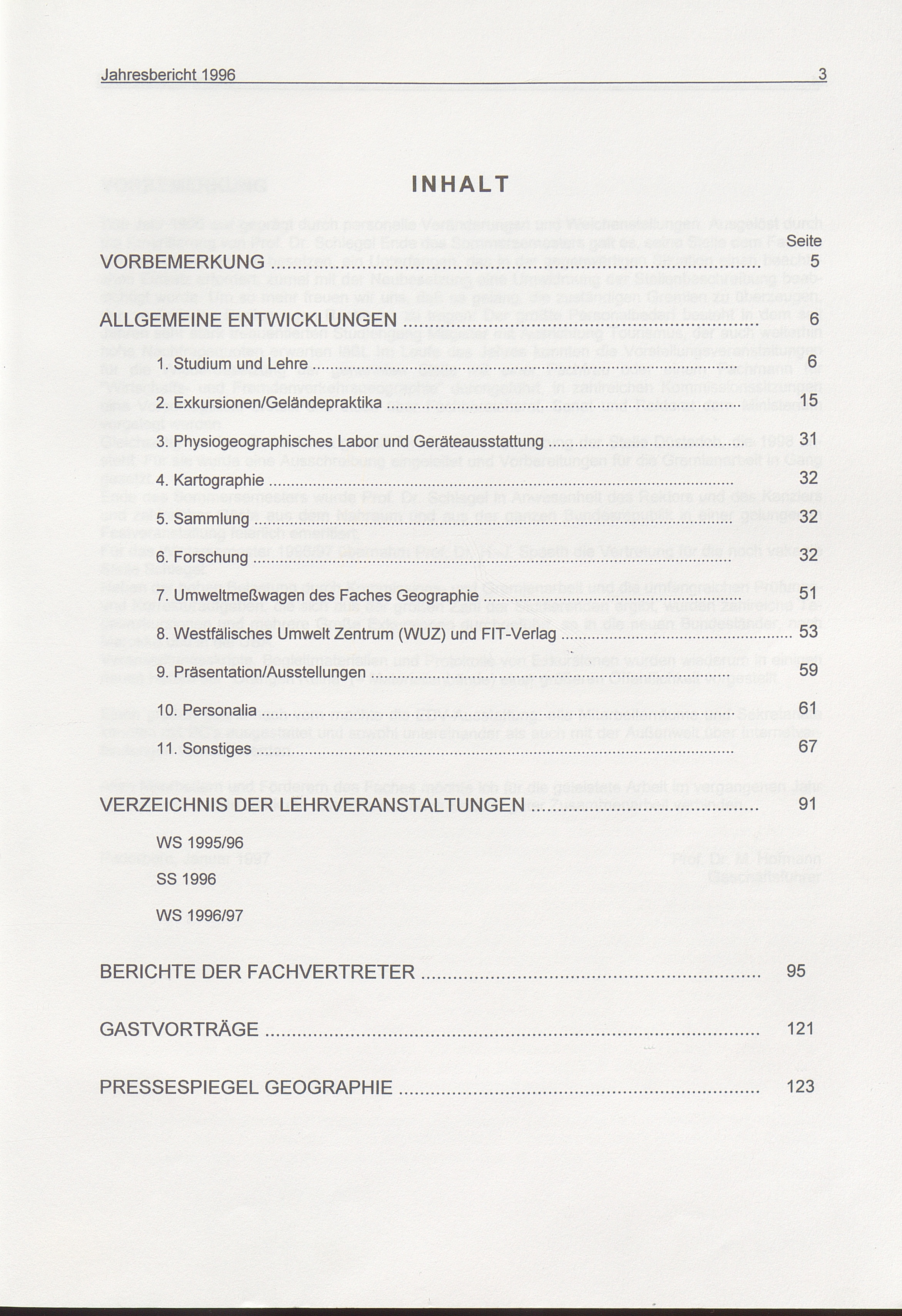 Jahresbericht ... des Faches Geographie im Fachbereich 1