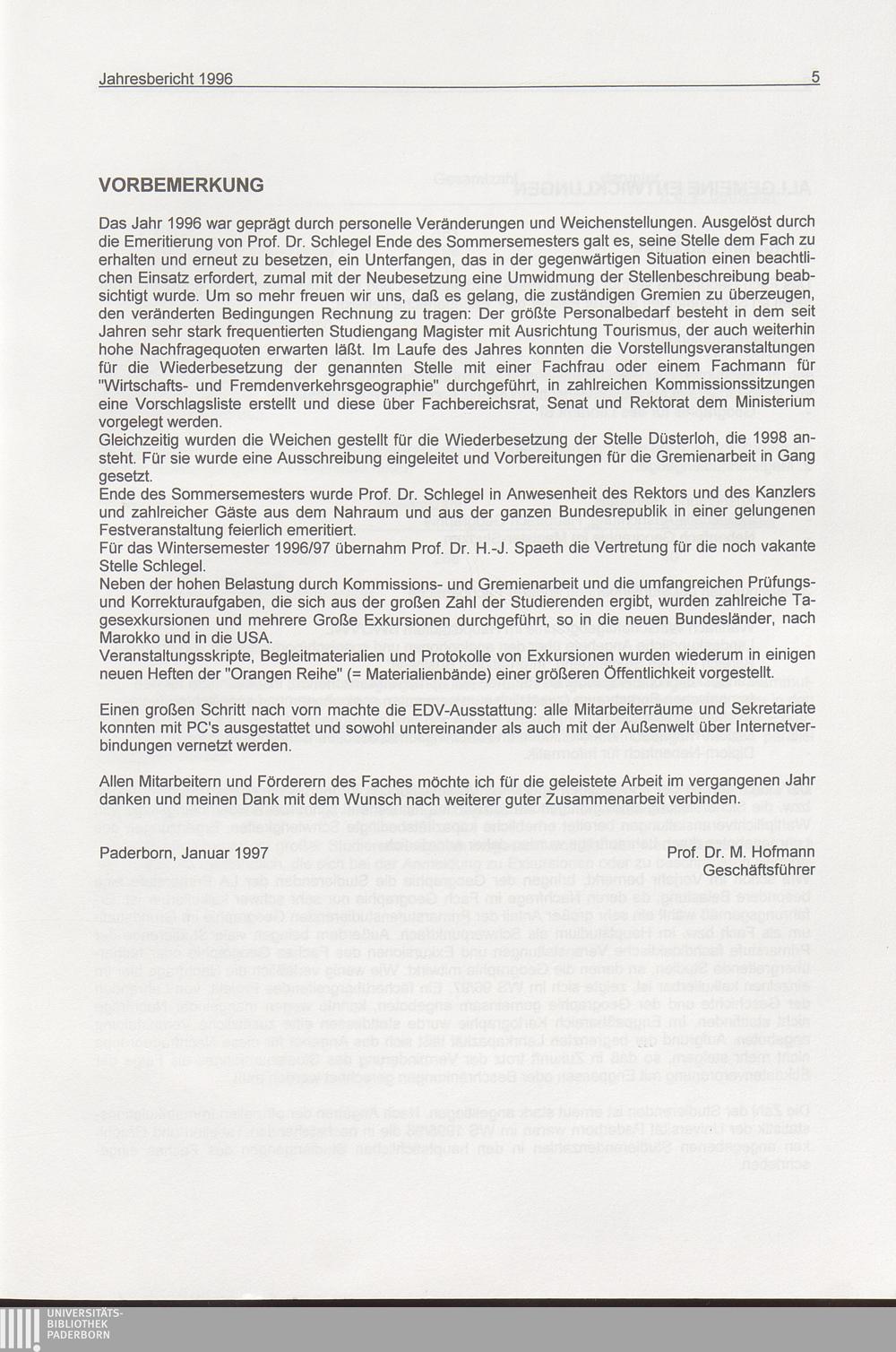 Jahresbericht ... des Faches Geographie im Fachbereich 1