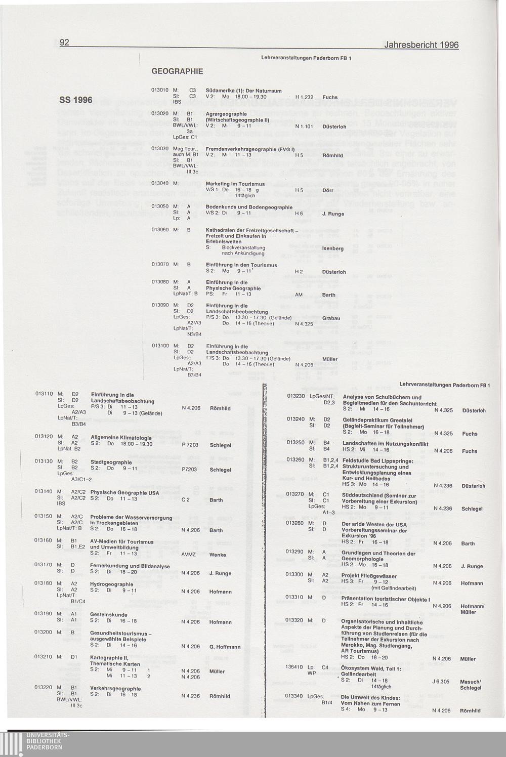 Jahresbericht ... des Faches Geographie im Fachbereich 1