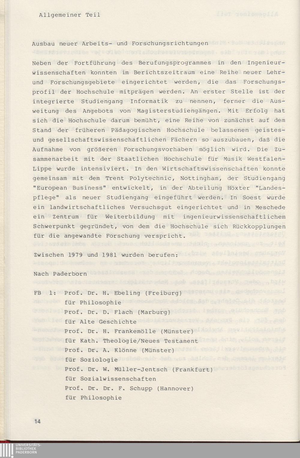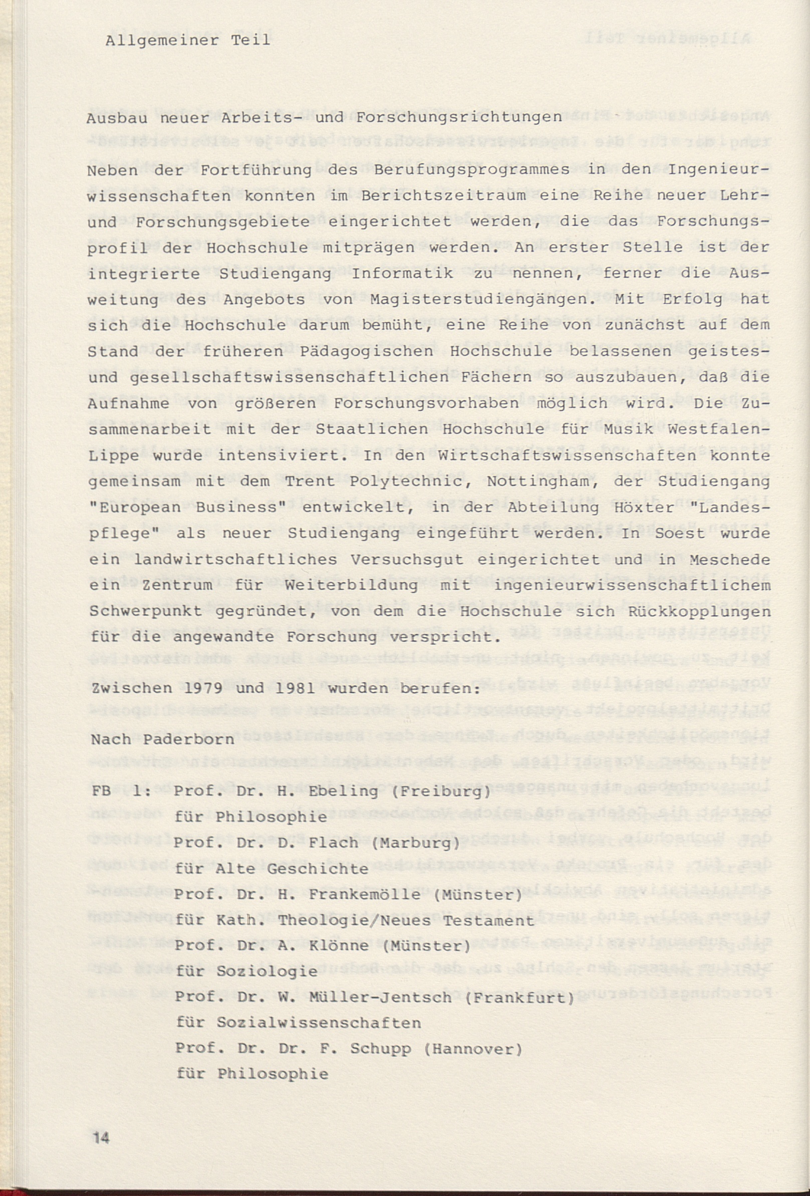 Ausbau neuer Arbeits- und Forschungsrichtungen