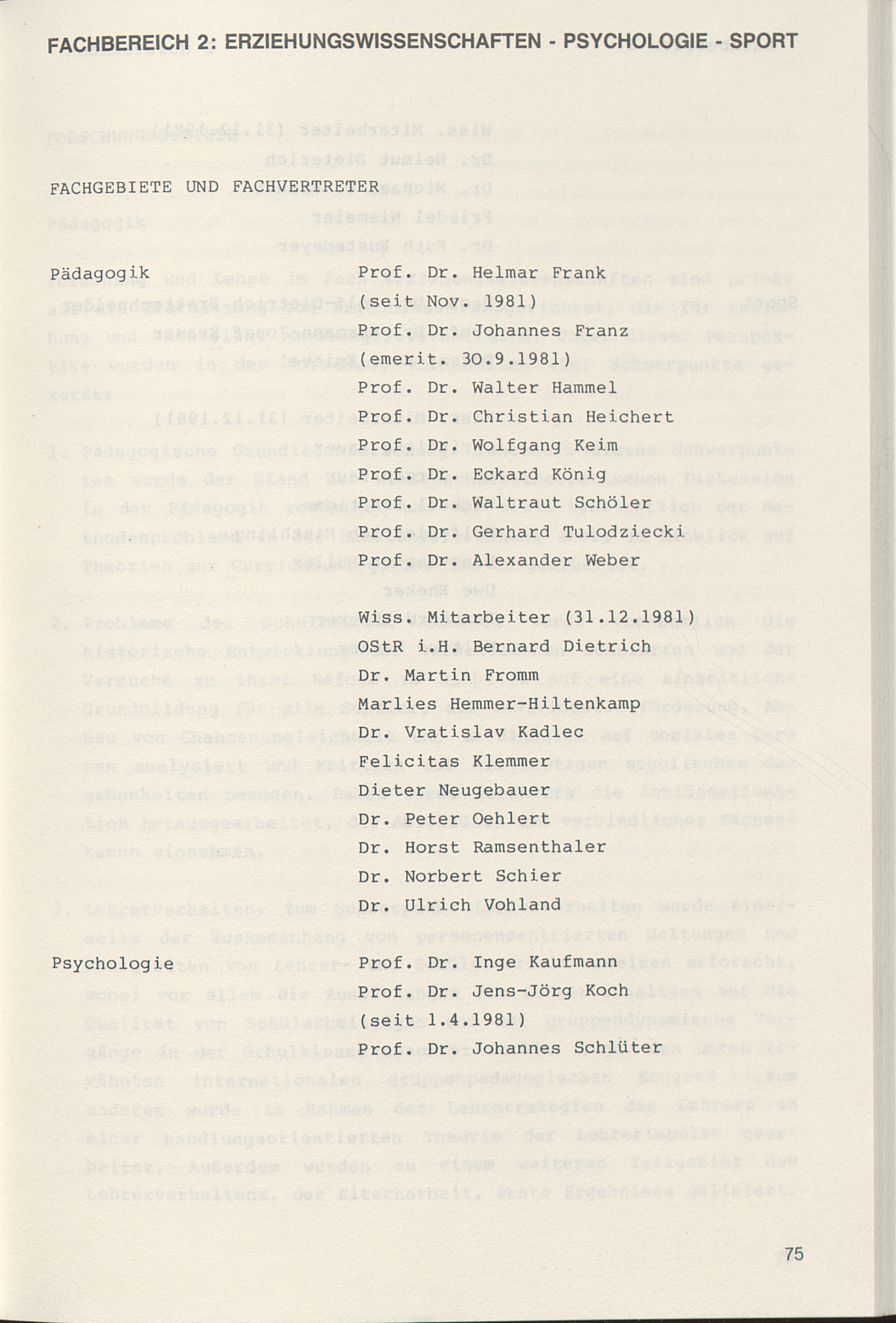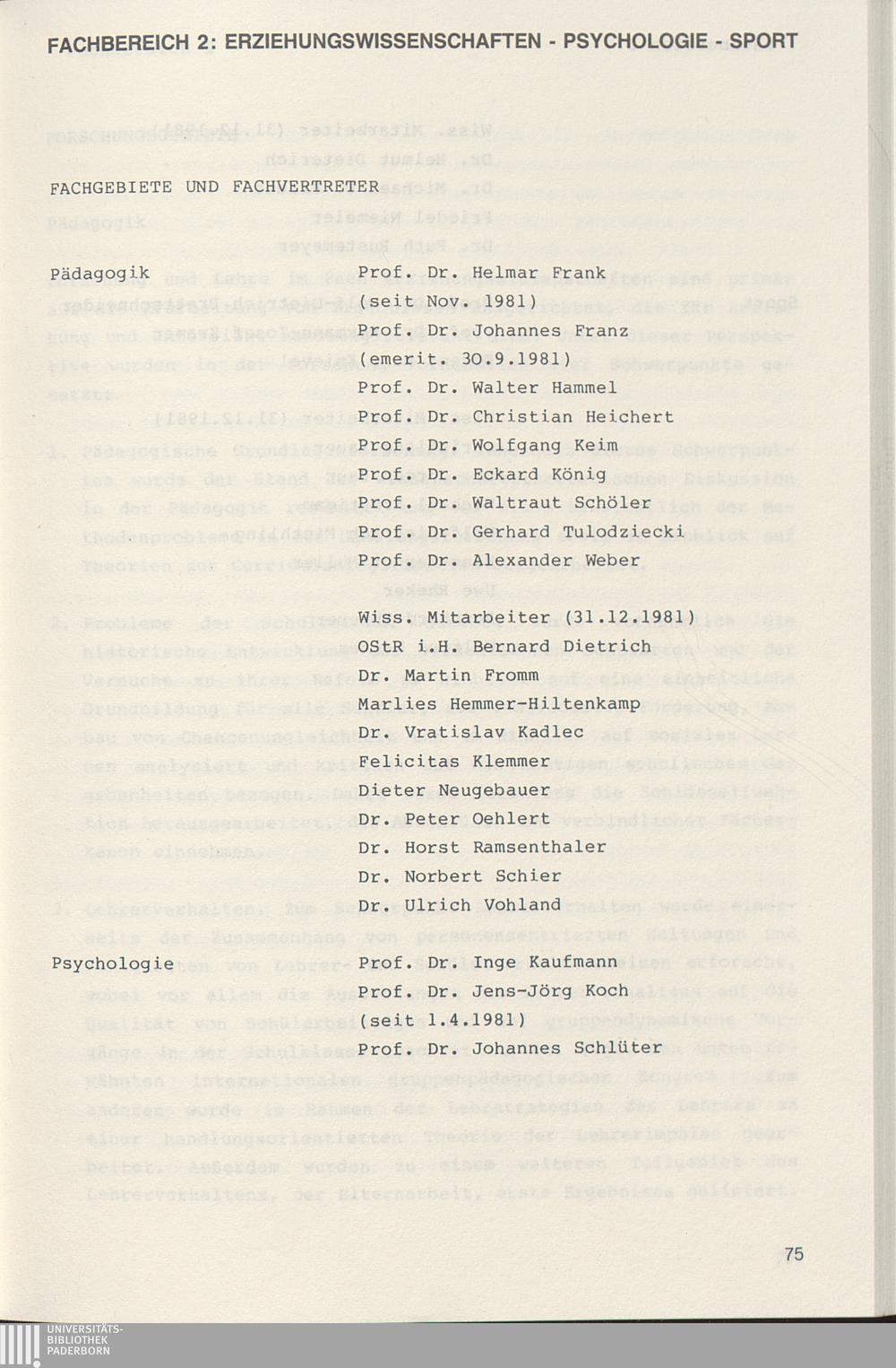 Fachbereich 2: Erziehungswissenschaften - Psychologie - Sport