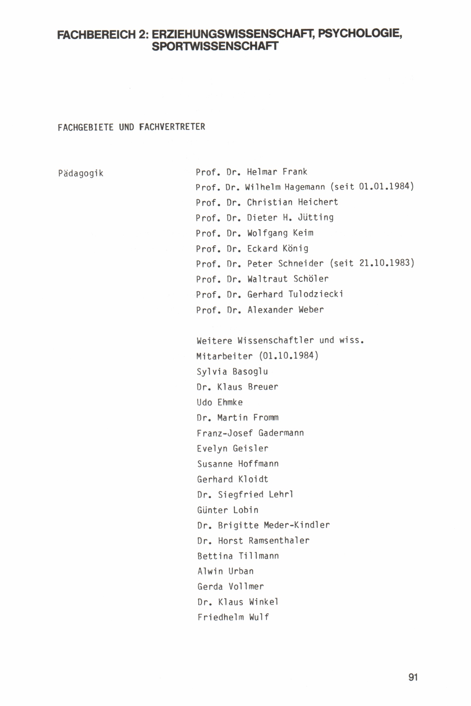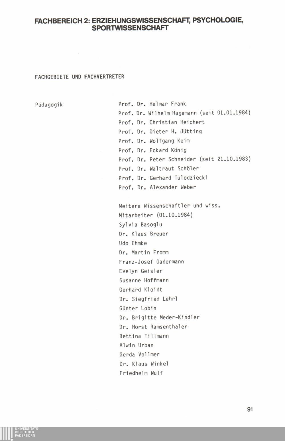 Fachbereich 2: Erziehungswissenschaft, Psychologie, Sportwissenschaft
