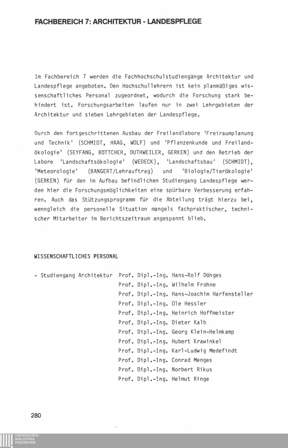 Fachbereich 7: Architektur - Landespflege