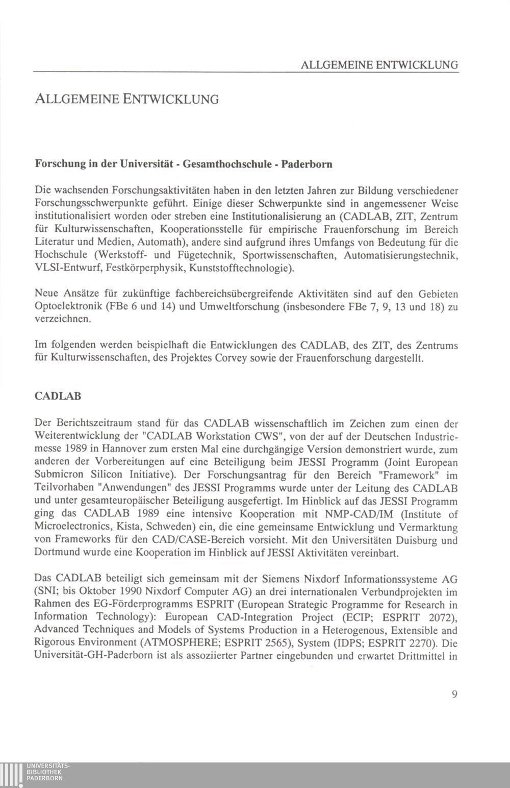 Allgemeine Entwicklung / Forschung in der Universität - Gesamthochschule - Pader[...]