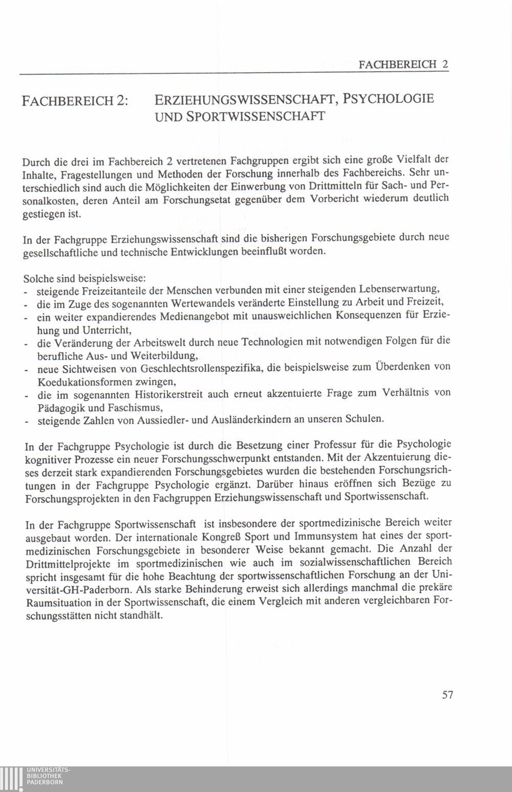 2 Erziehungswissenschaft, Psychologie, Sportwissenschaft