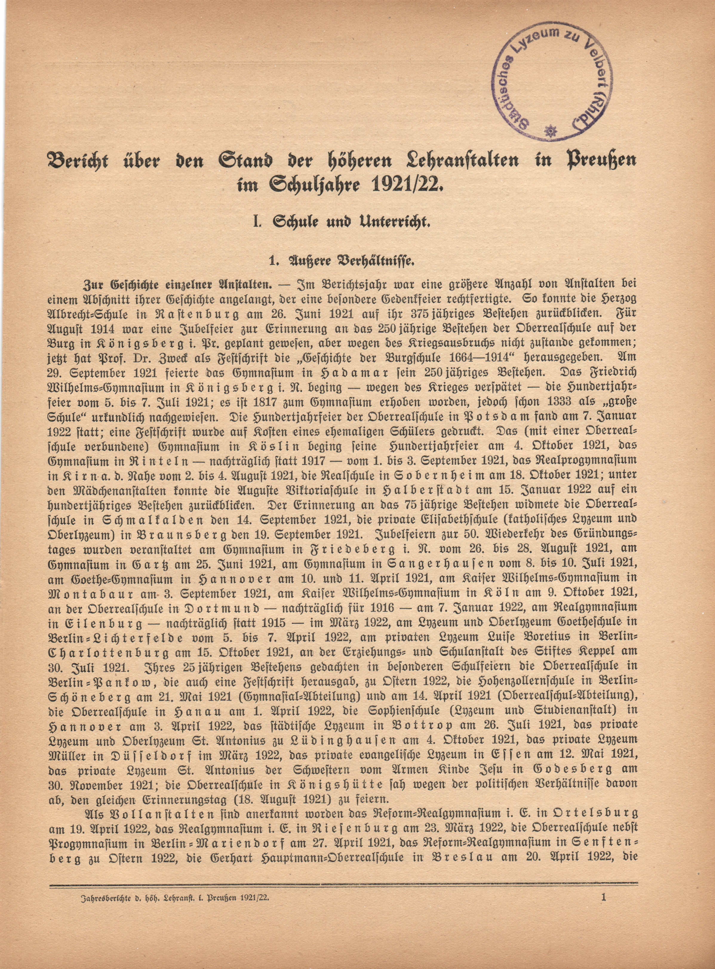Bericht über den Stand der höheren Lehranstalten in Preußen im Schuljahre 1921/2[...]