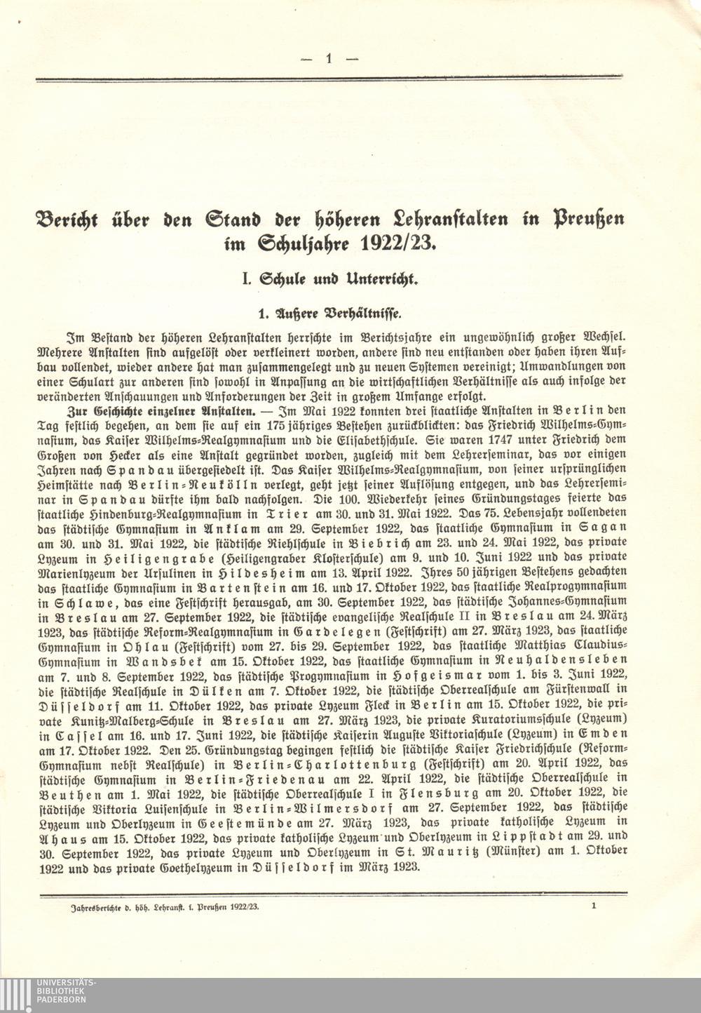 Bericht über den Stand der höheren Lehranstalten in Preußen im Schuljahre 1922/2[...]
