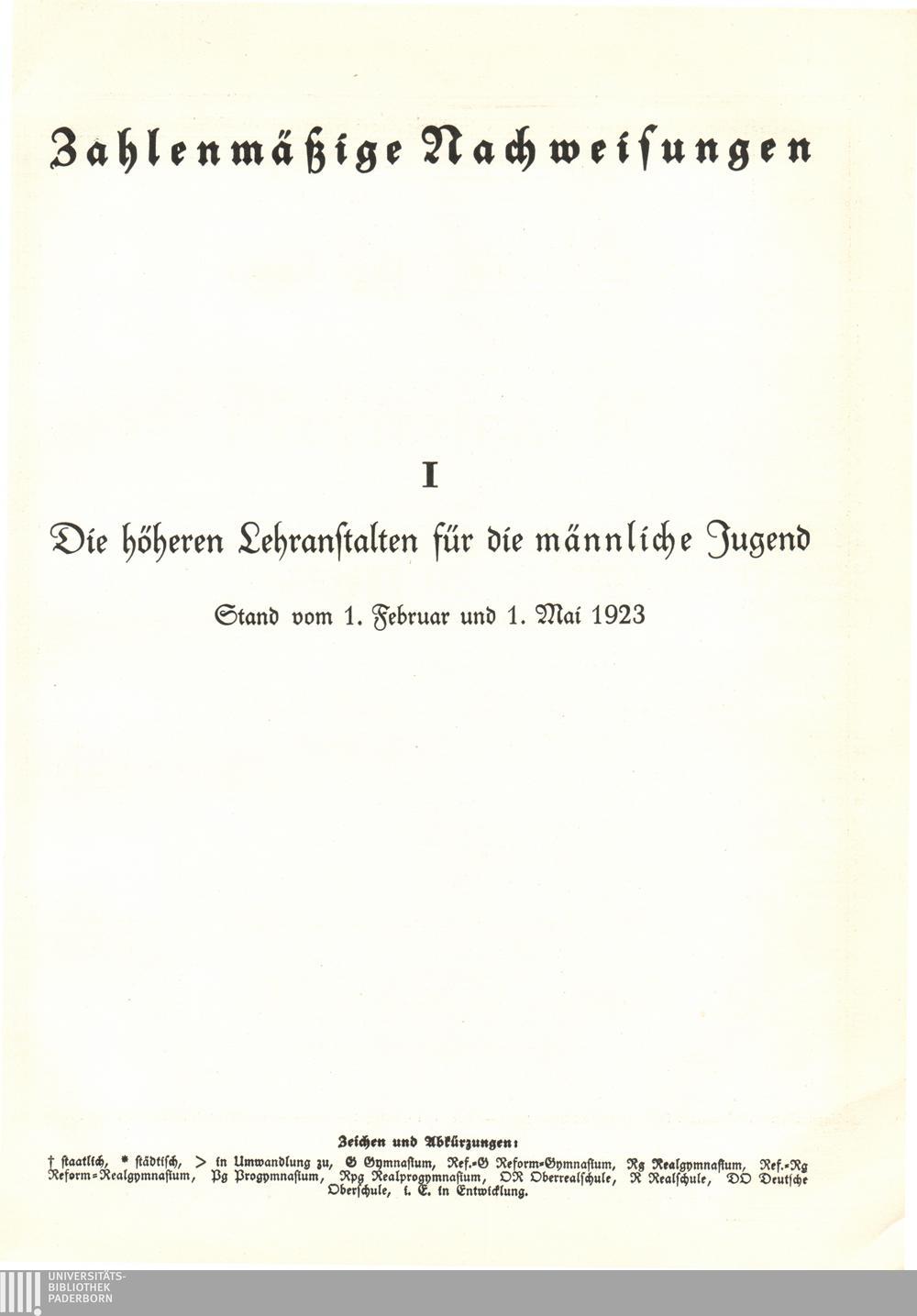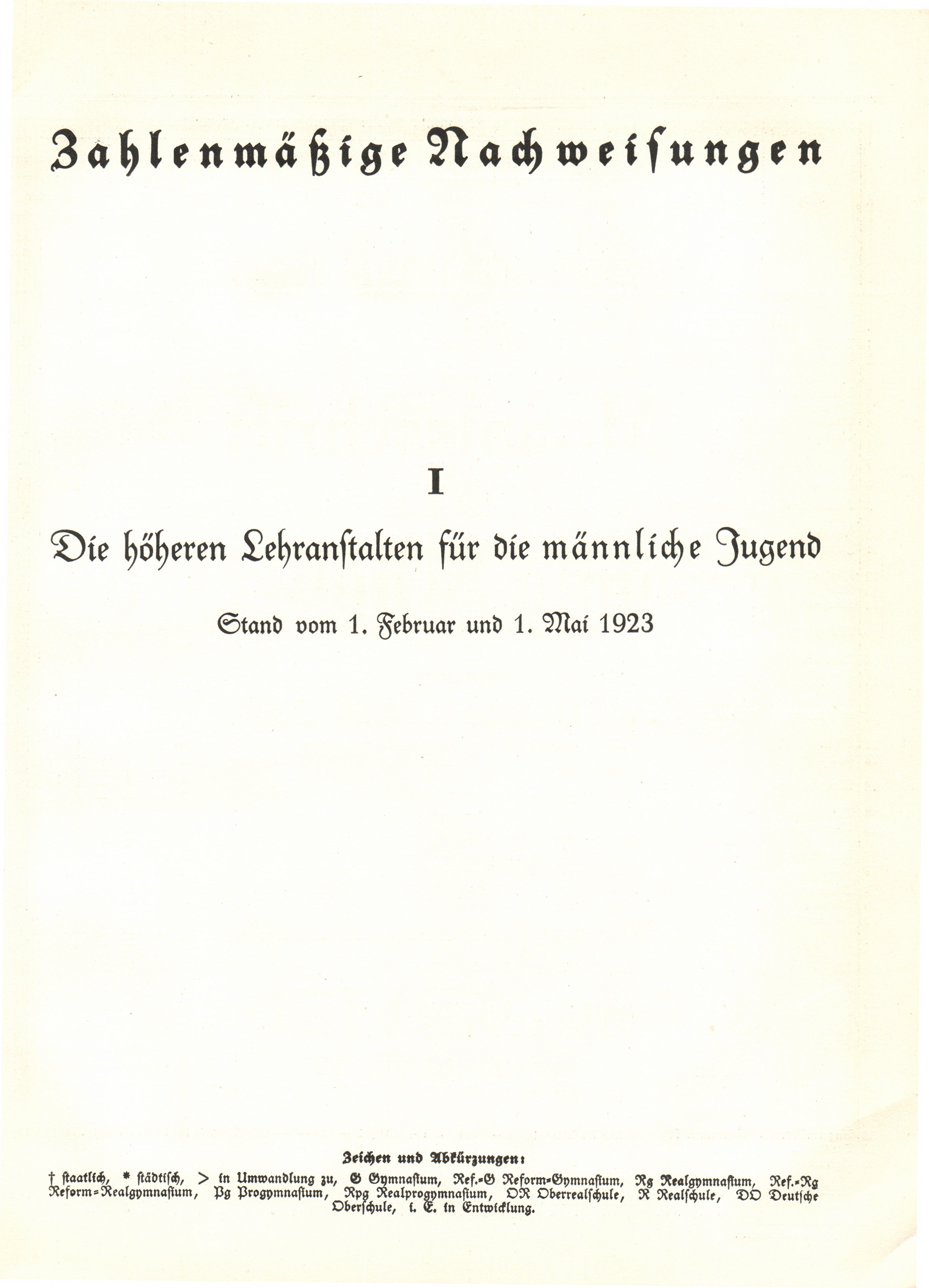 I. Die höheren Lehranstalten für die männliche Jugend. Stand vom 1. Februar und 1.[...]