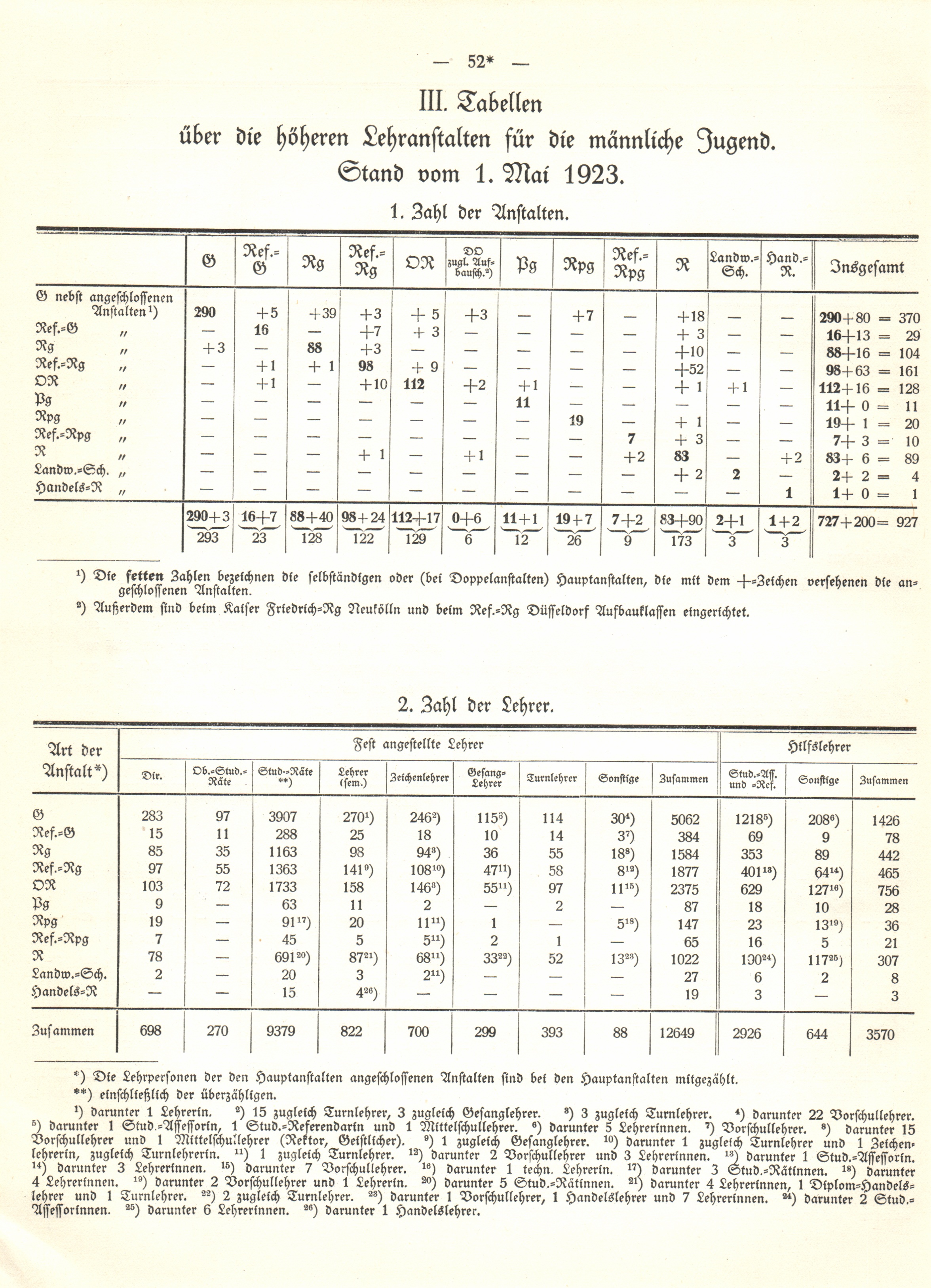 III. Tabellen über die höheren Lehranstalten für die männliche Jugend. Stand vom[...]