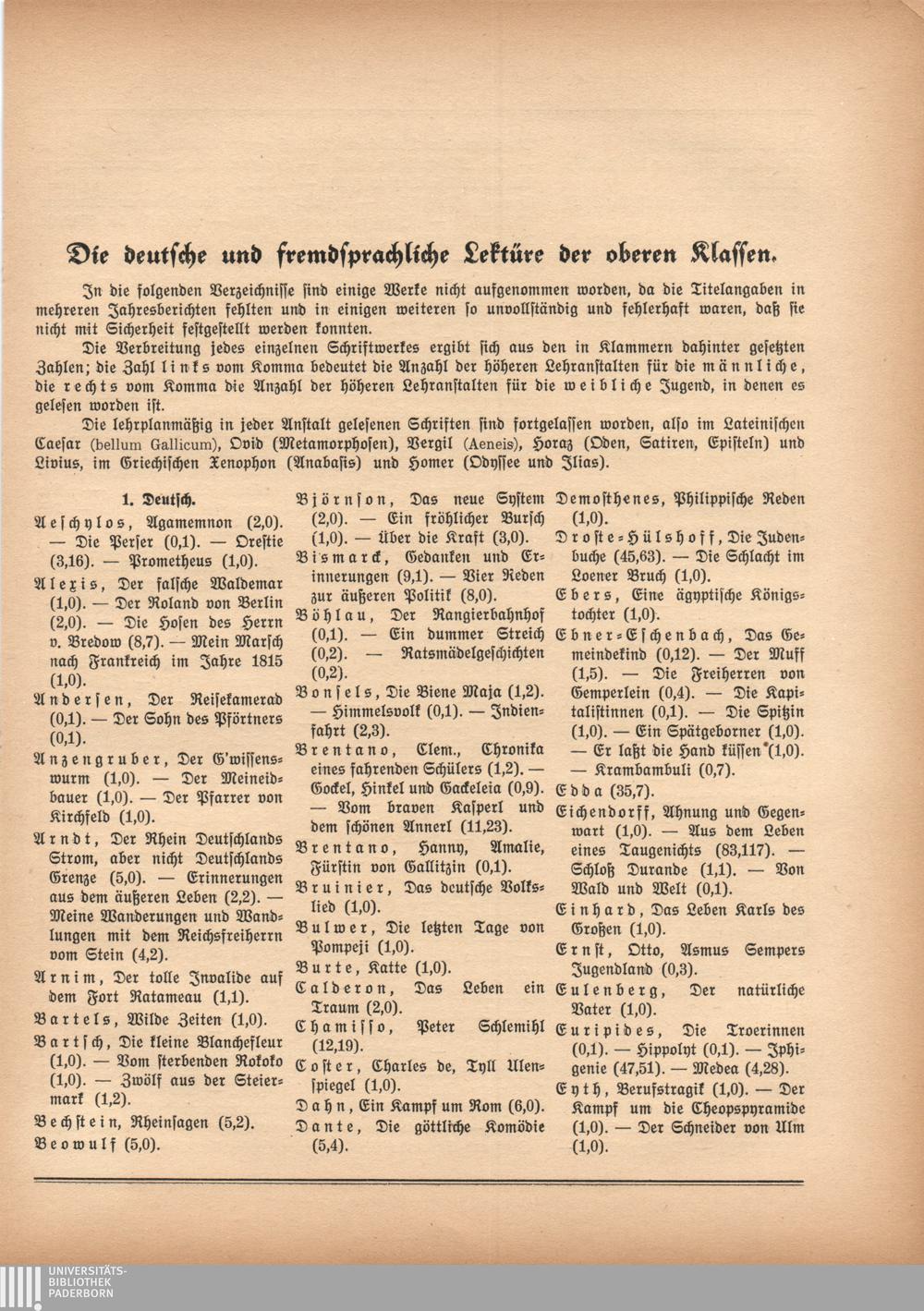 Die deutsche und fremdsprachliche Lektüre der oberen Klassen: Deutsch