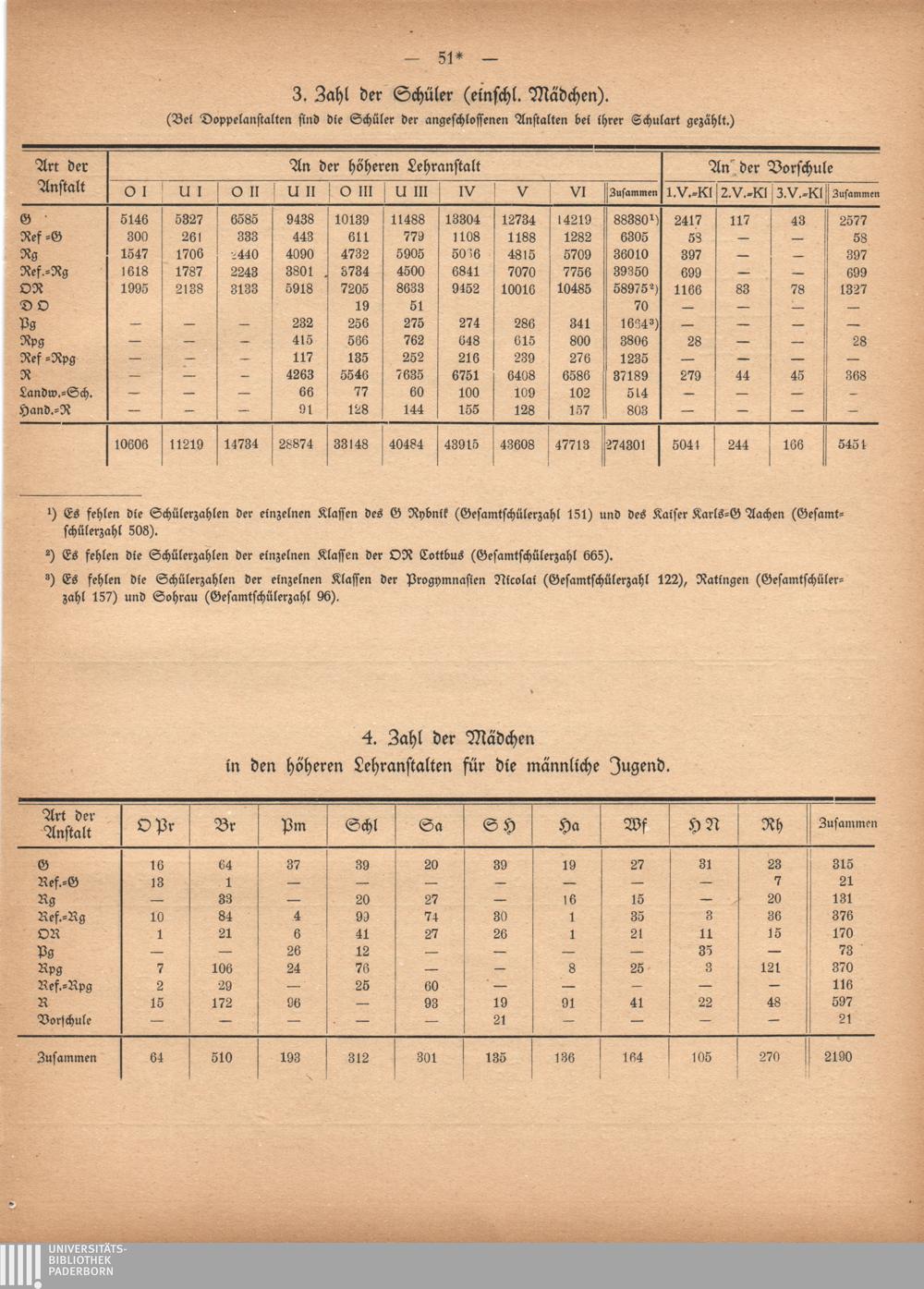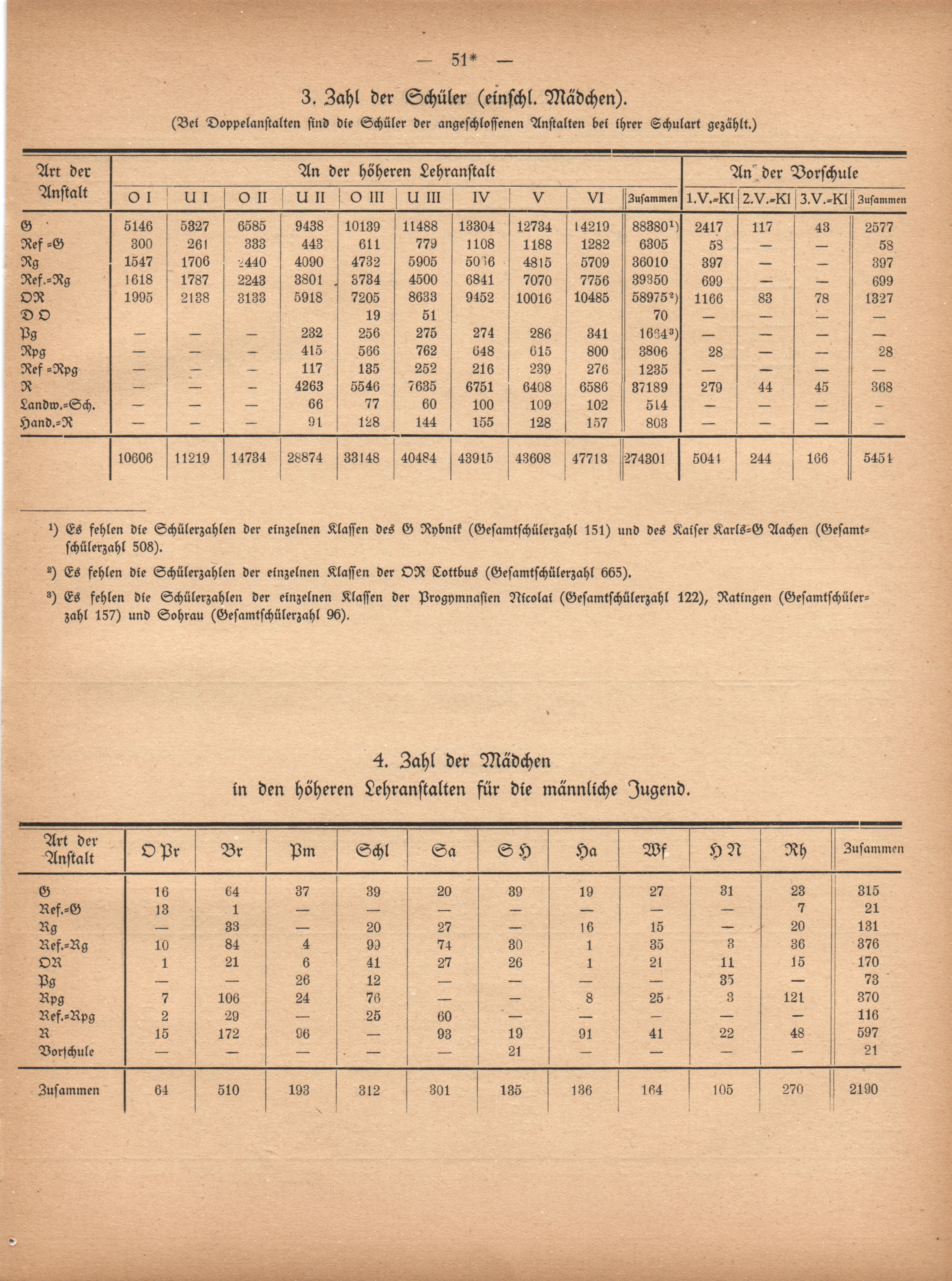 4. Zahl der Mädchen in den höheren Lehranstalten für die männliche Jugend.