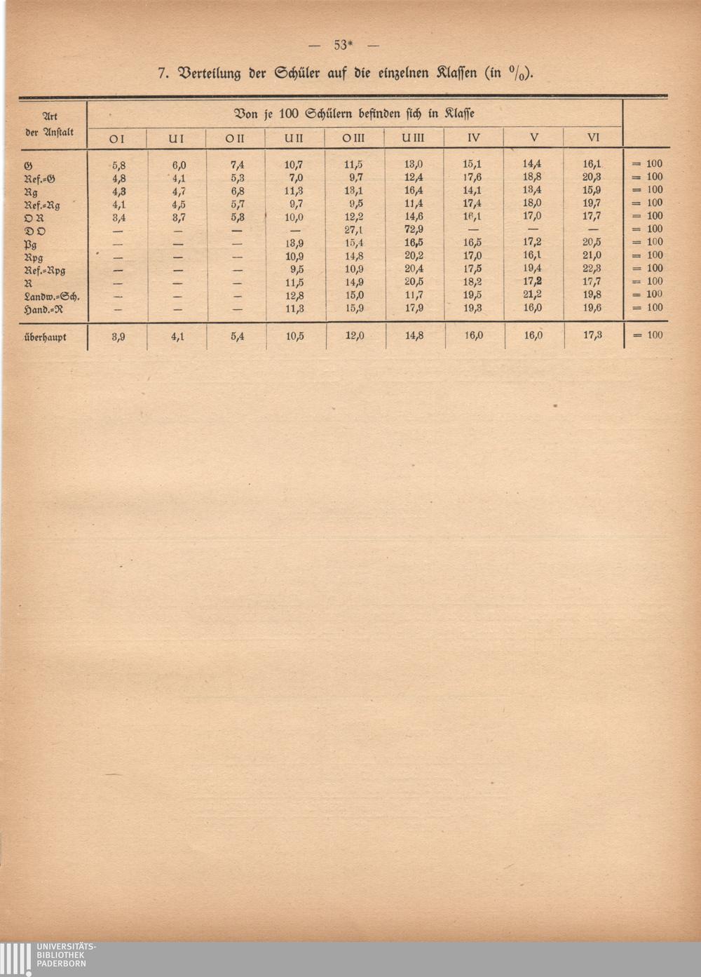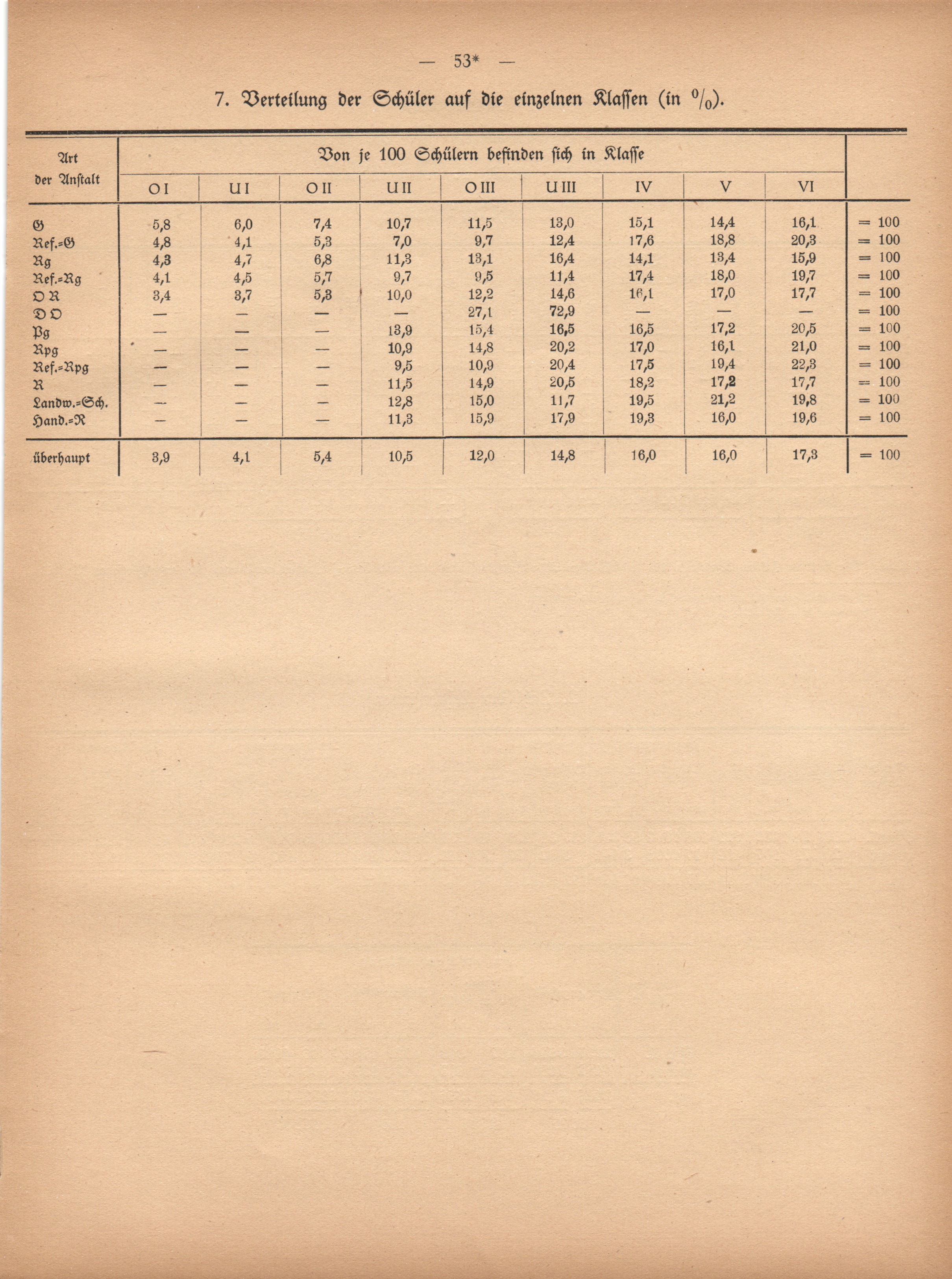 7. Verteilung der Schüler auf die einzelnen Klassen (in %).