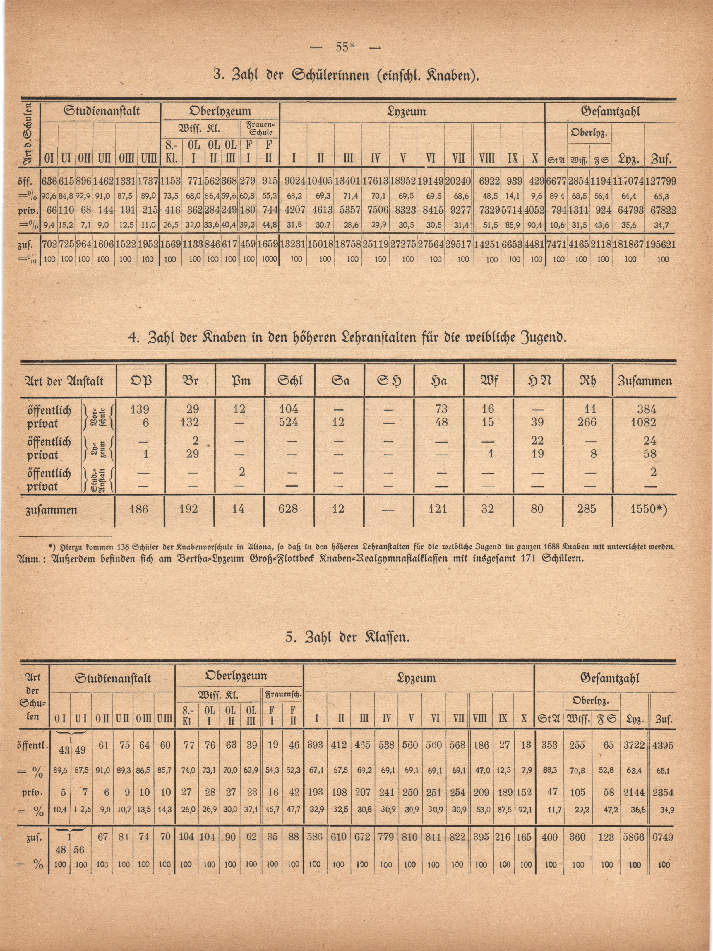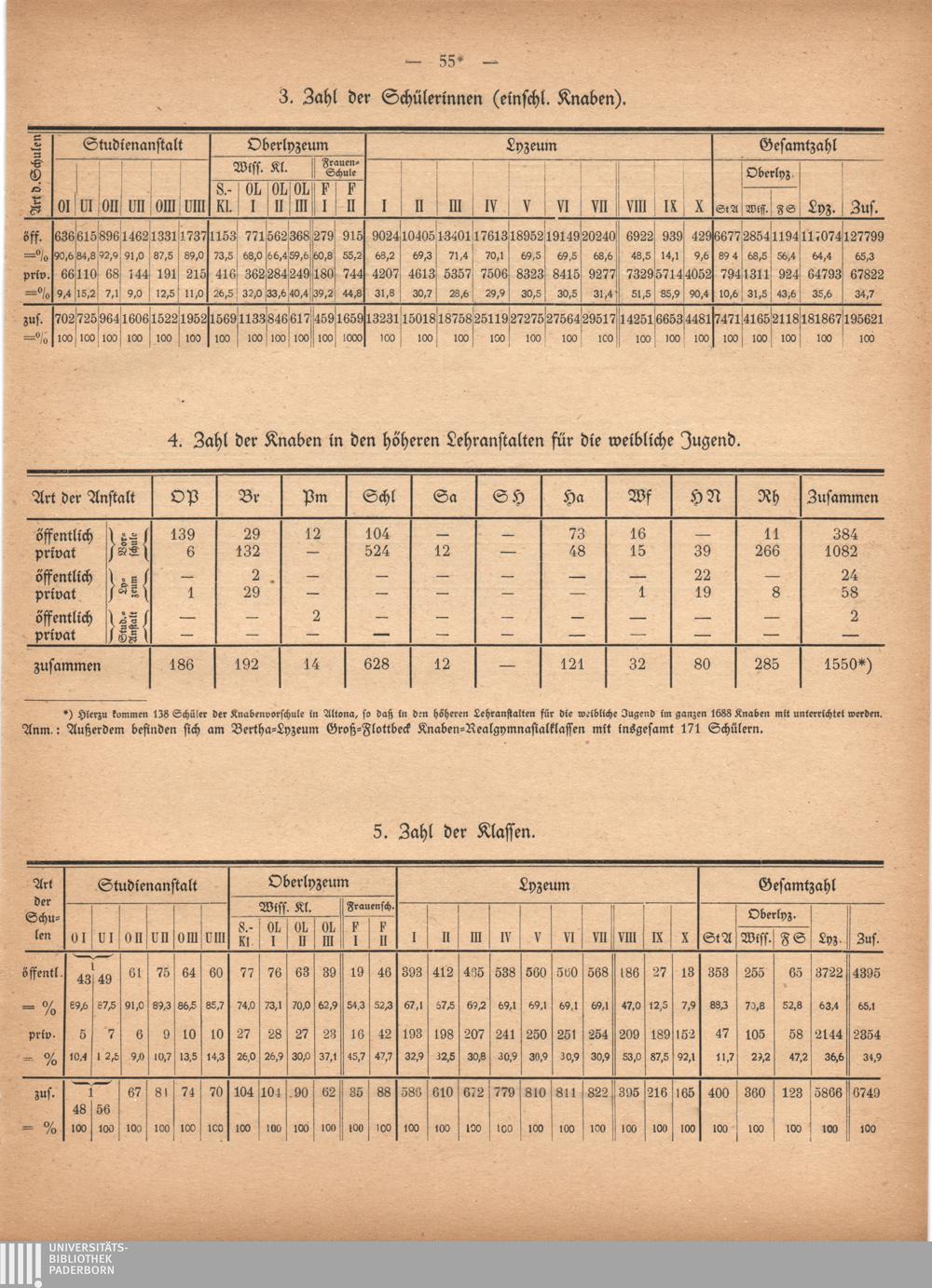 IV. Tabellen über die höheren Lehranstalten für die weibliche Jugend. Stand vom 1.[...]