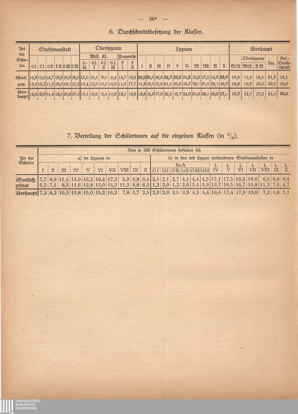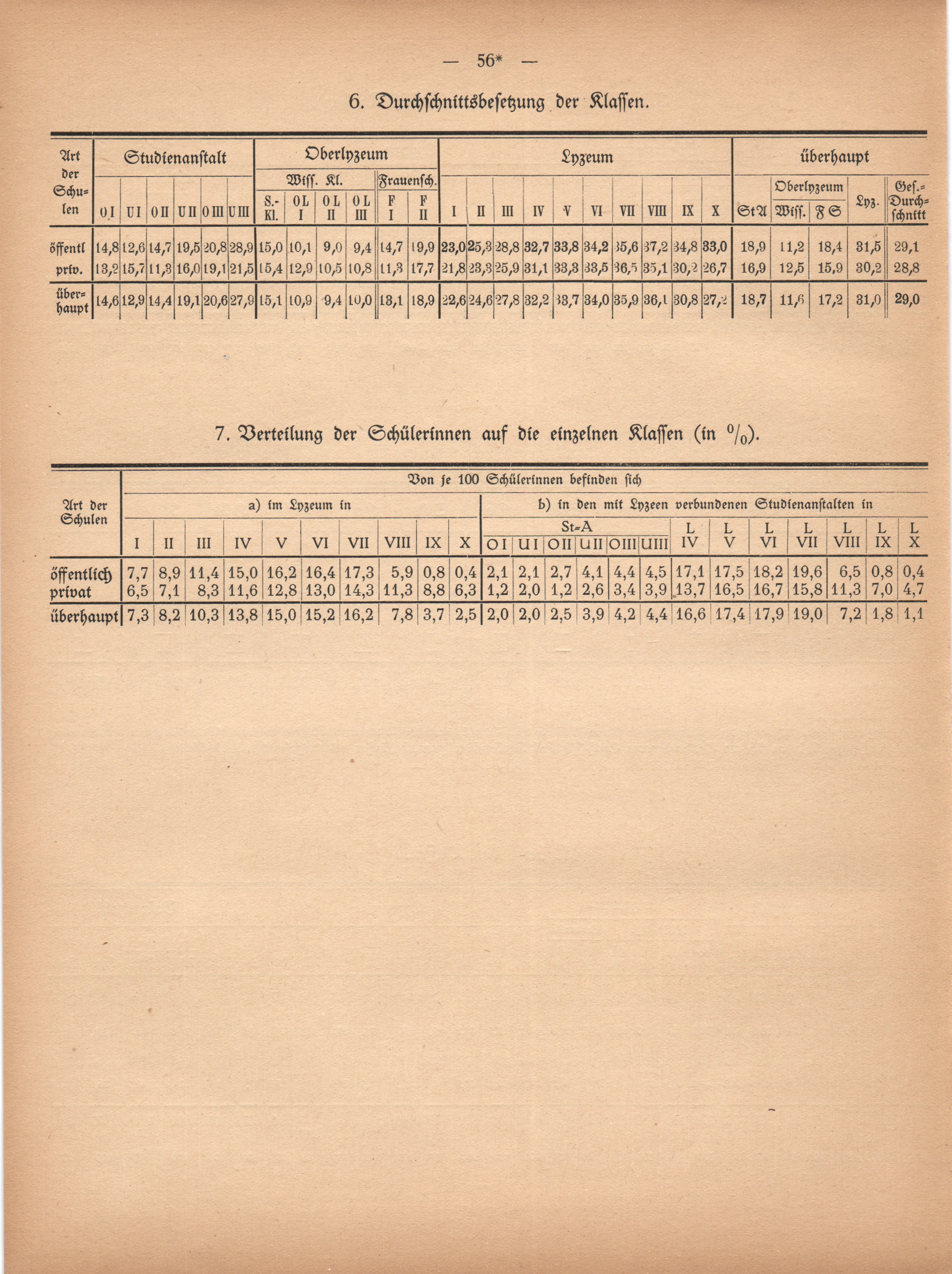 7. Verteilung der Schülerinnen auf die einzelnen Klassen (in %).