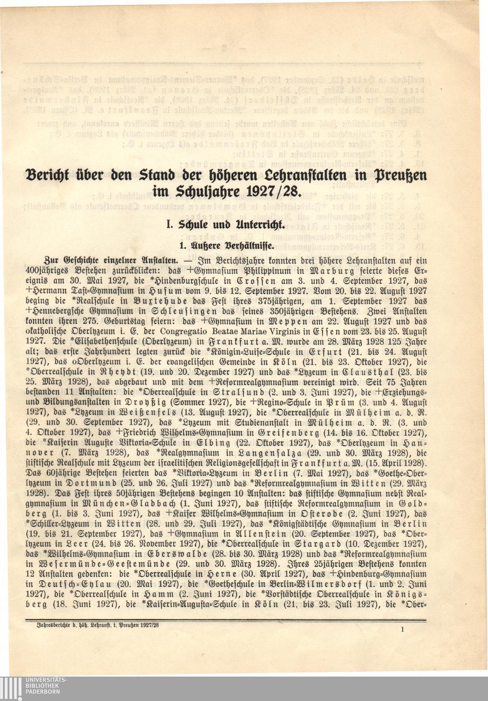 Bericht über den Stand der höheren Lehranstalten in Preußen im Schuljahre 1927/2[...]