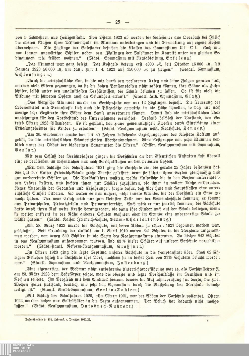 Bericht über den Stand der höheren Lehranstalten in Preußen im Schuljahre 1922/2[...]