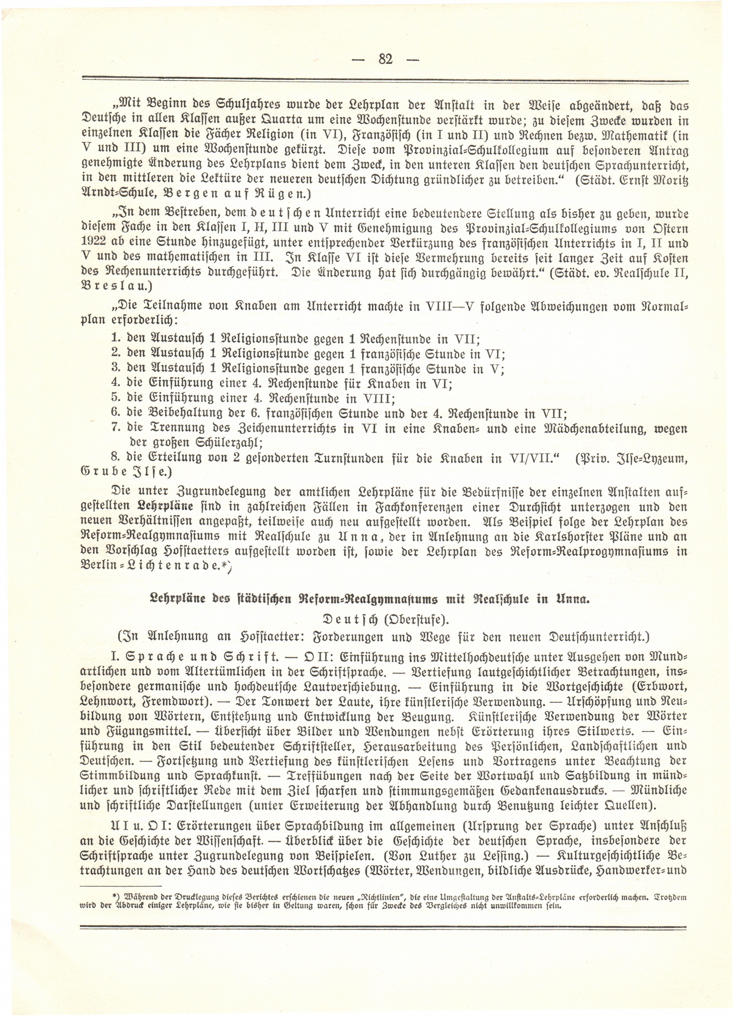 Lehrpläne des städtischen Reform-Realgymnasiums mit Realschule in Unna