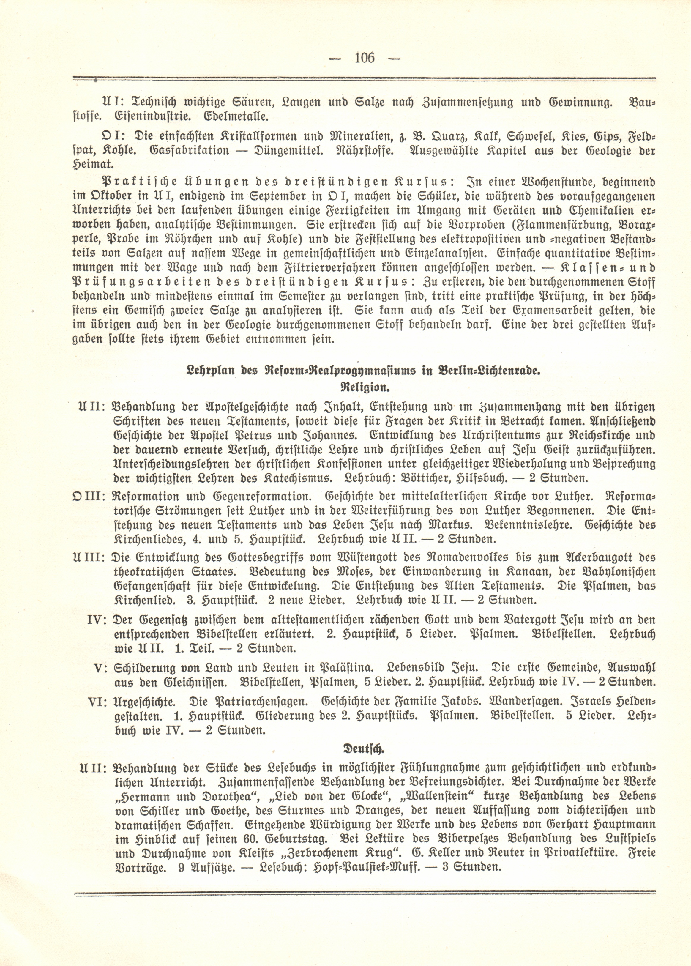 Lehrplan des Reform-Realprogymnasiums in Berlin-Lichtenrade