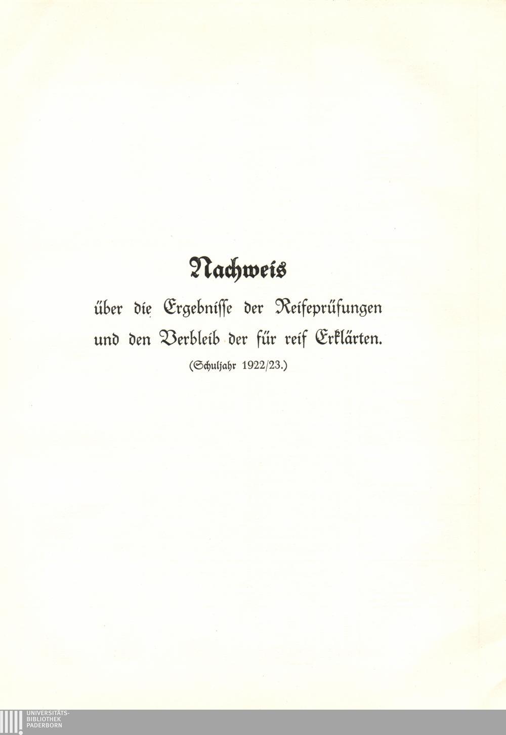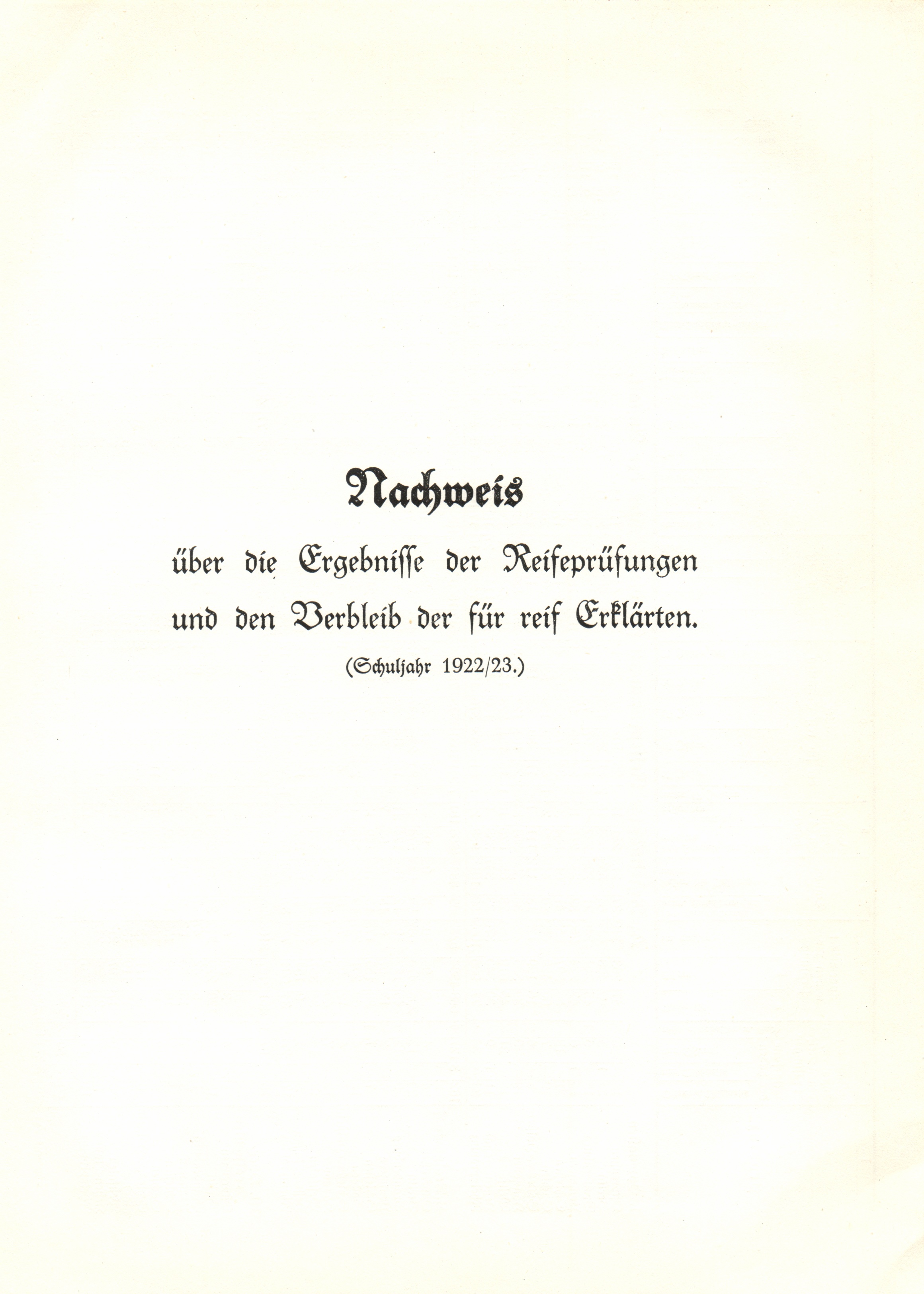 Nachweis über die Ergebnisse der Reifeprüfungen: Schuljahr 1922/23
