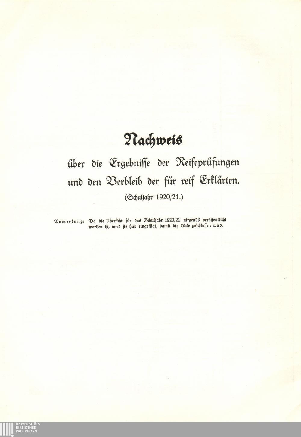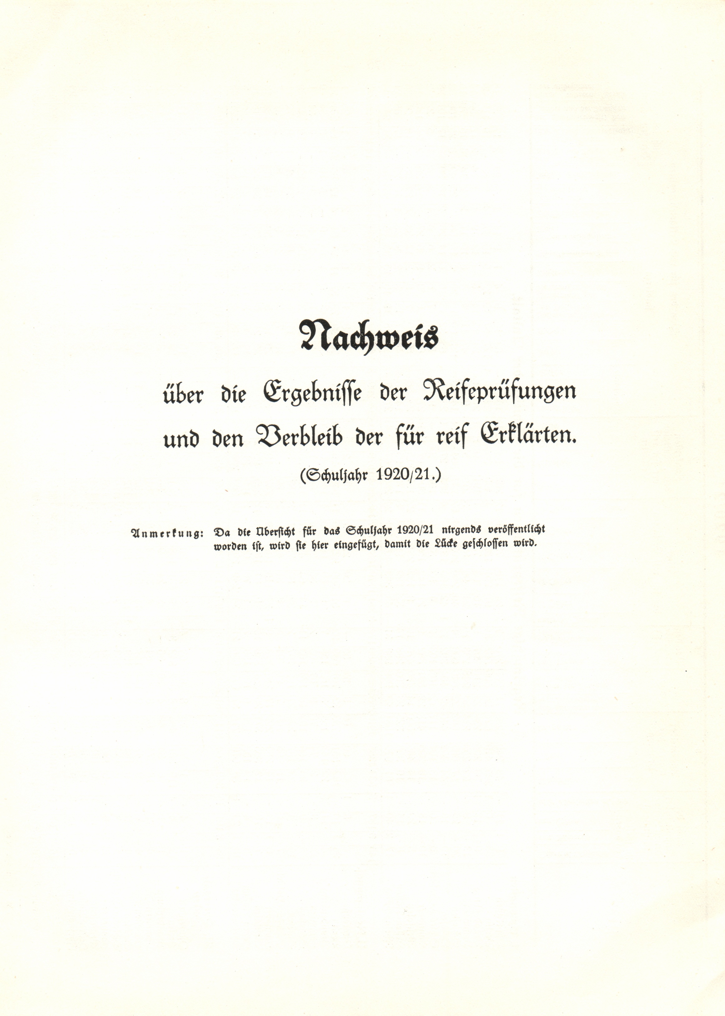 Schuljahr 1920/21 als Nachtrag