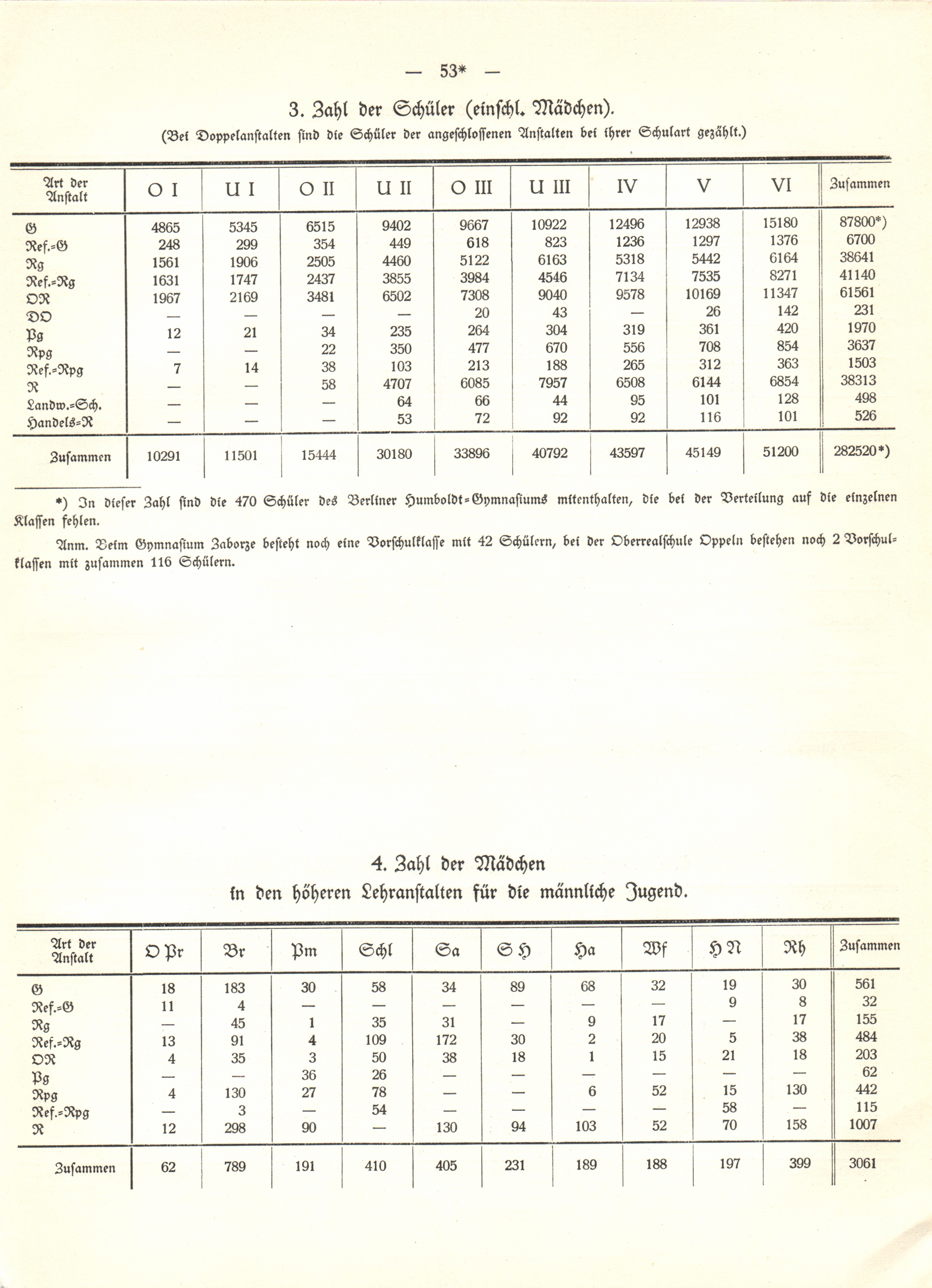 4. Zahl der Mädchen in den höheren Lehranstalten für die männliche Jugend.