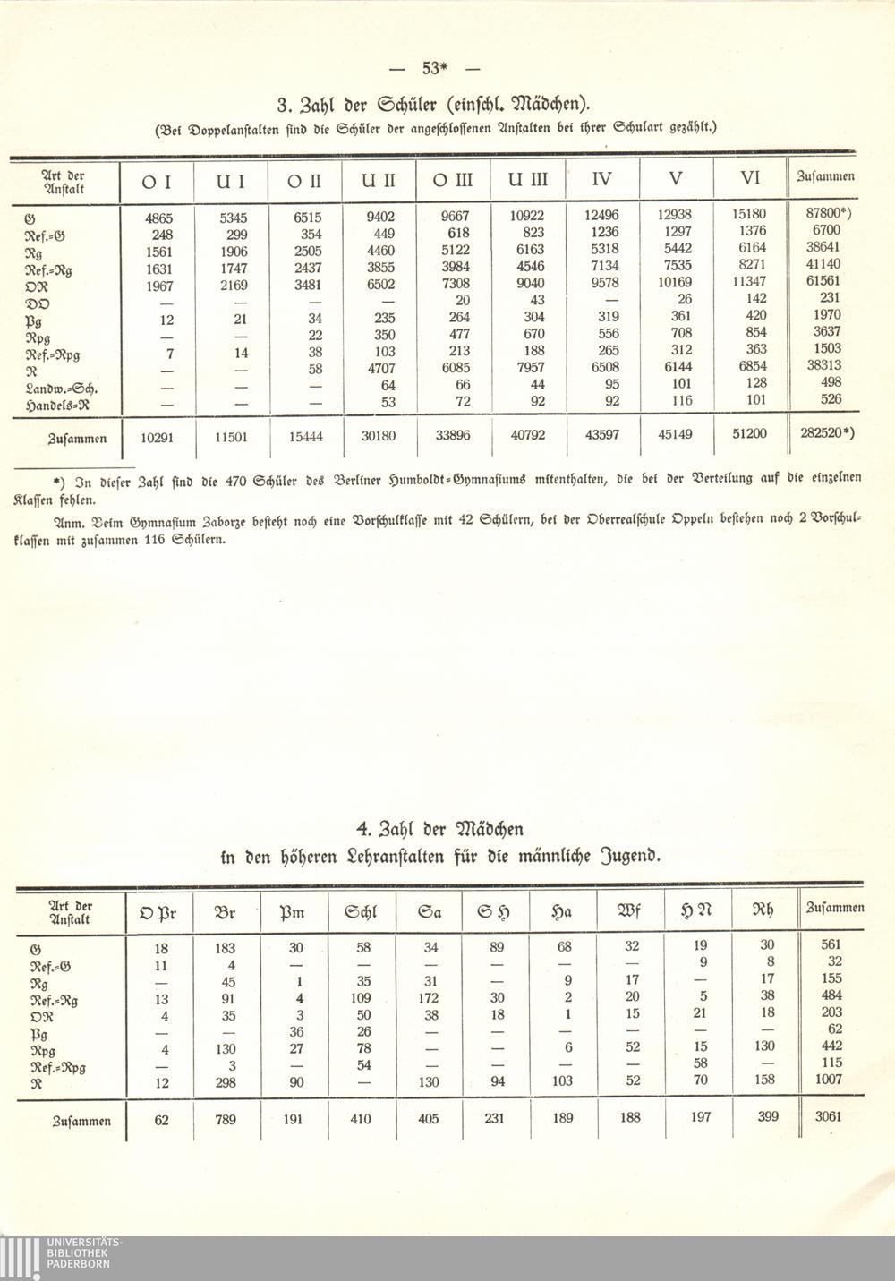 III. Tabellen über die höheren Lehranstalten für die männliche Jugend. Stand vom[...]