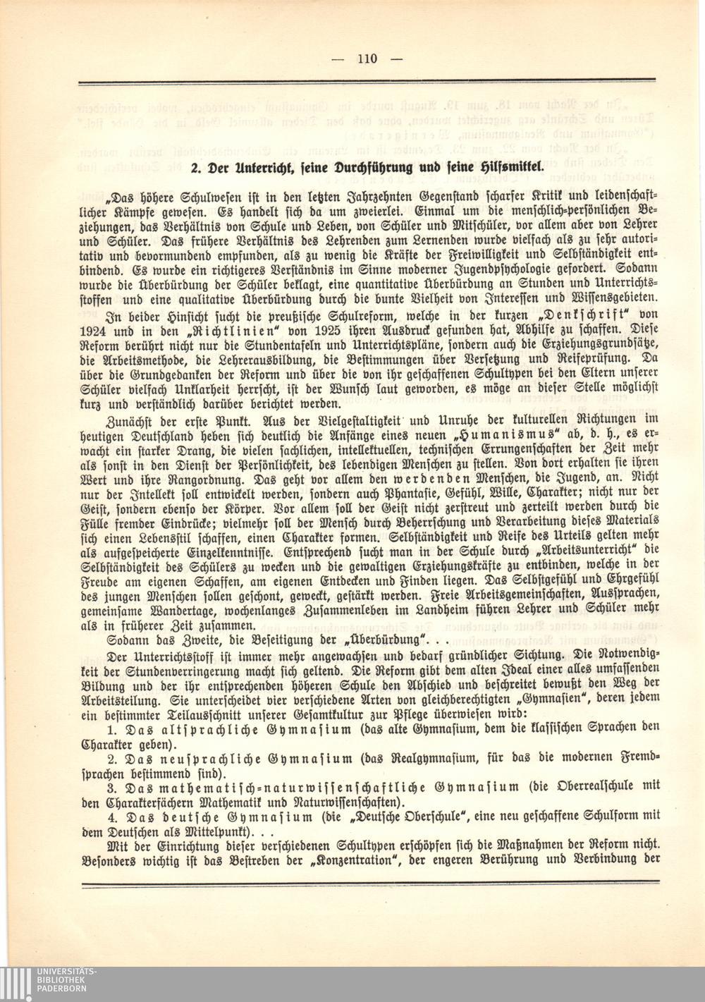 2. Der Unterricht, seine Durchführung und seine Hilfsmittel.