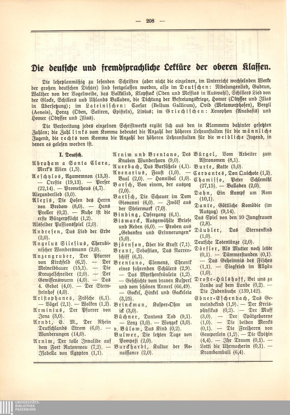 Die deutsche und fremdsprachliche Lektüre der oberen Klassen (Verzeichnis der gelesenen[...]